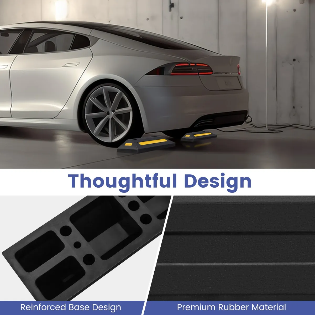 Veiliger parkeren: De versterkte basis van hoogwaardig rubber zorgt voor maximale stabiliteit en voorkomt ongewenste bewegingen. Bovendien kan de goed zichtbare reflecterende strip de veiligheid in een donkere omgeving vergroten.