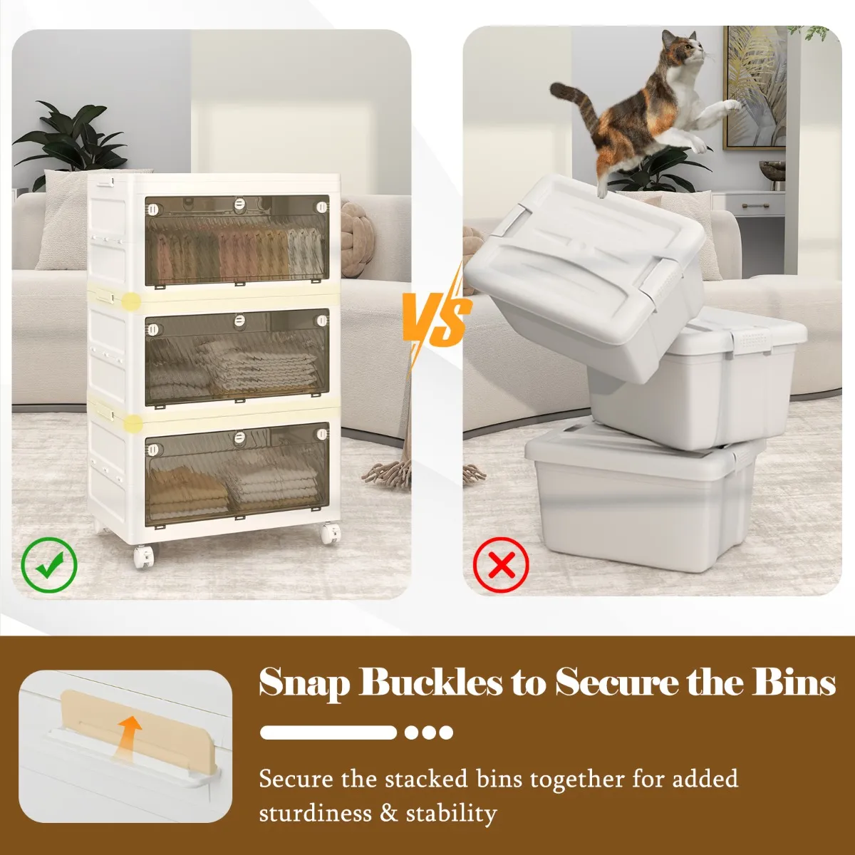 Set Van 3/4 Kunststof Opbergbakken 126 L/168 L Stapelbare Opbergbakken Met Deksels Opvouwbare Opbergbak Met Wieltje-3