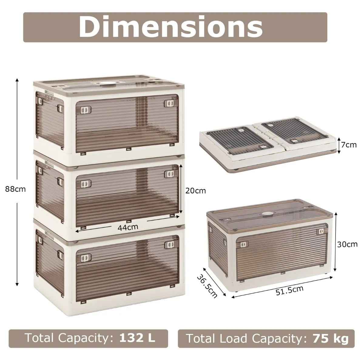 - Afmetingen van elke bak: 51,5 x 36,5 x 30 cm (L x B x H)Hoogte van 3 gestapelde bakken: 88 cm