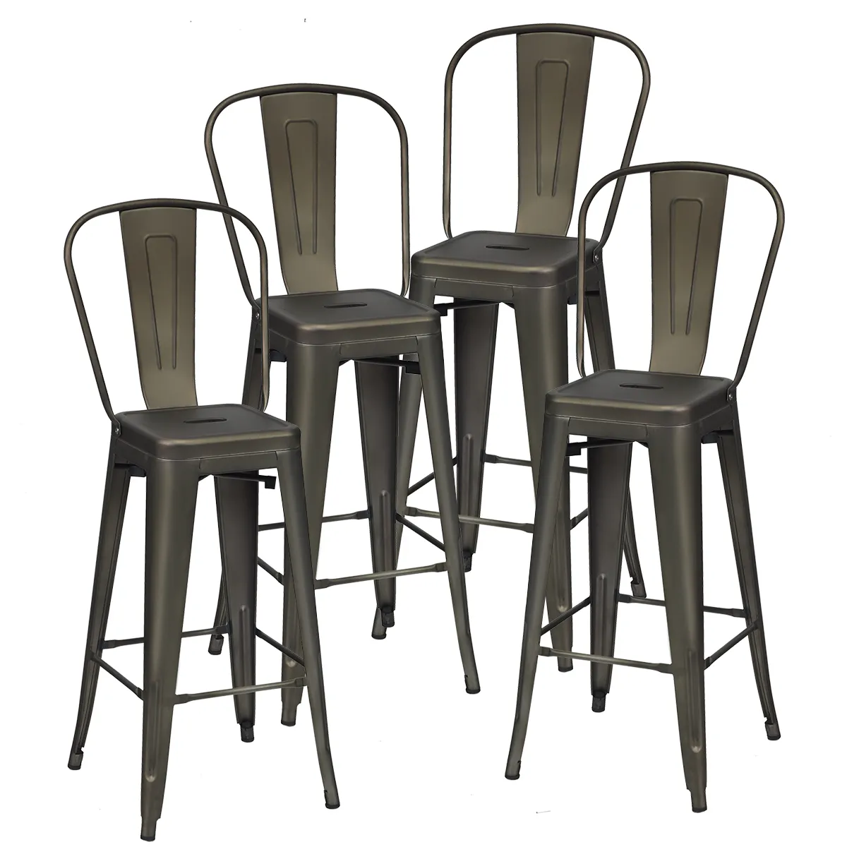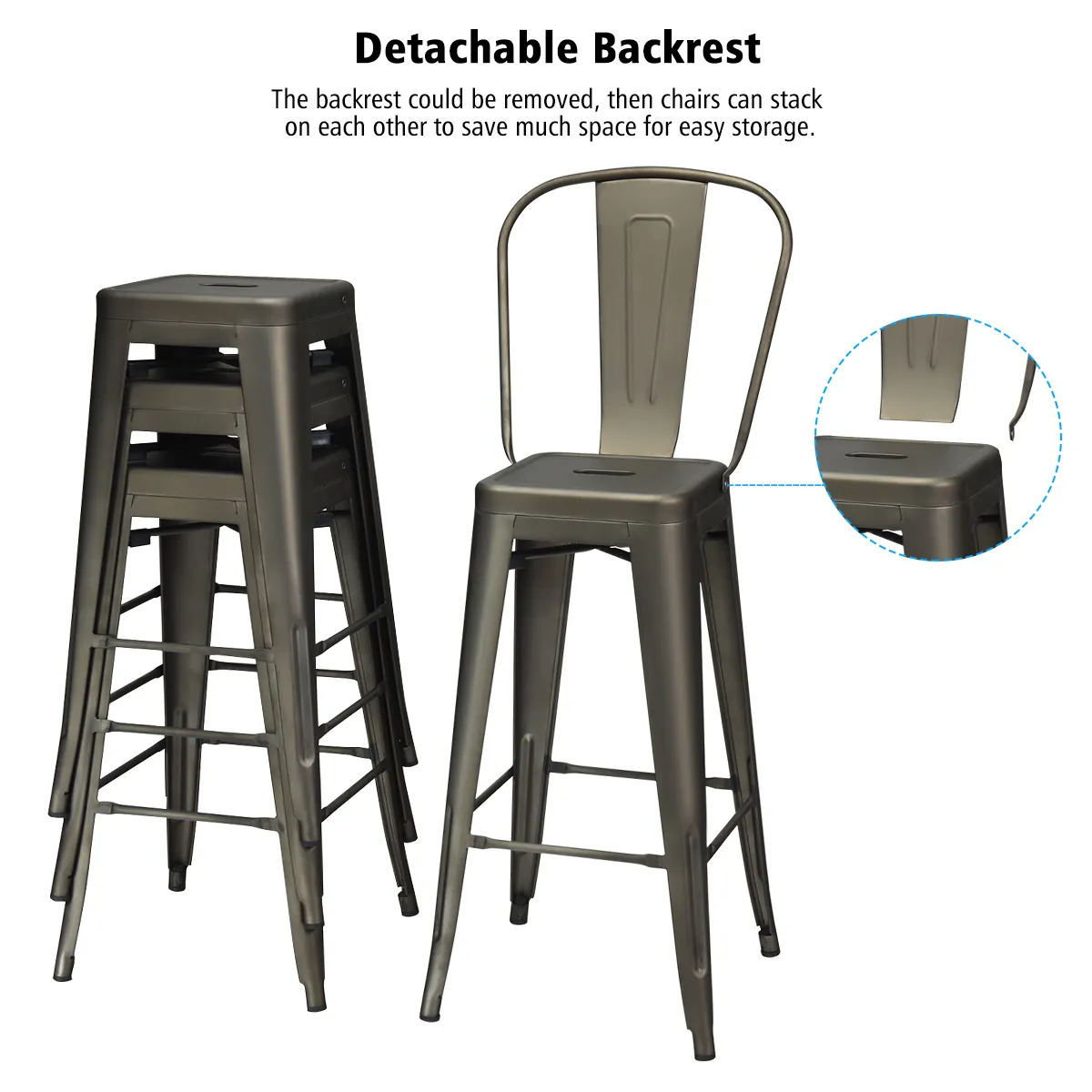Hoogwaardig materiaal en stabiele structuur: Enerzijds is deze set van 4 metalen keukenkrukken duurzaam. Anderzijds heeft het oppervlak van elke barkruk met poedersproeibehandeling een hoge roestbestendigheid. Bovendien verhogen de sporten tussen de stoelpoten ook de stabiliteit.