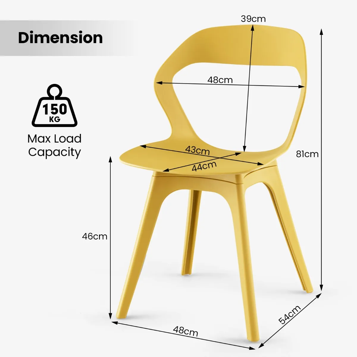 Sterk en stabiel frame: Met een verborgen basis beschikt elke eetkamerstoel over een groot draagvermogen van maximaal 150 kg. Aan de onderkant is hij uitgerust met antislip voetkussens die beschermend werken en krassen op de vloer voorkomen.