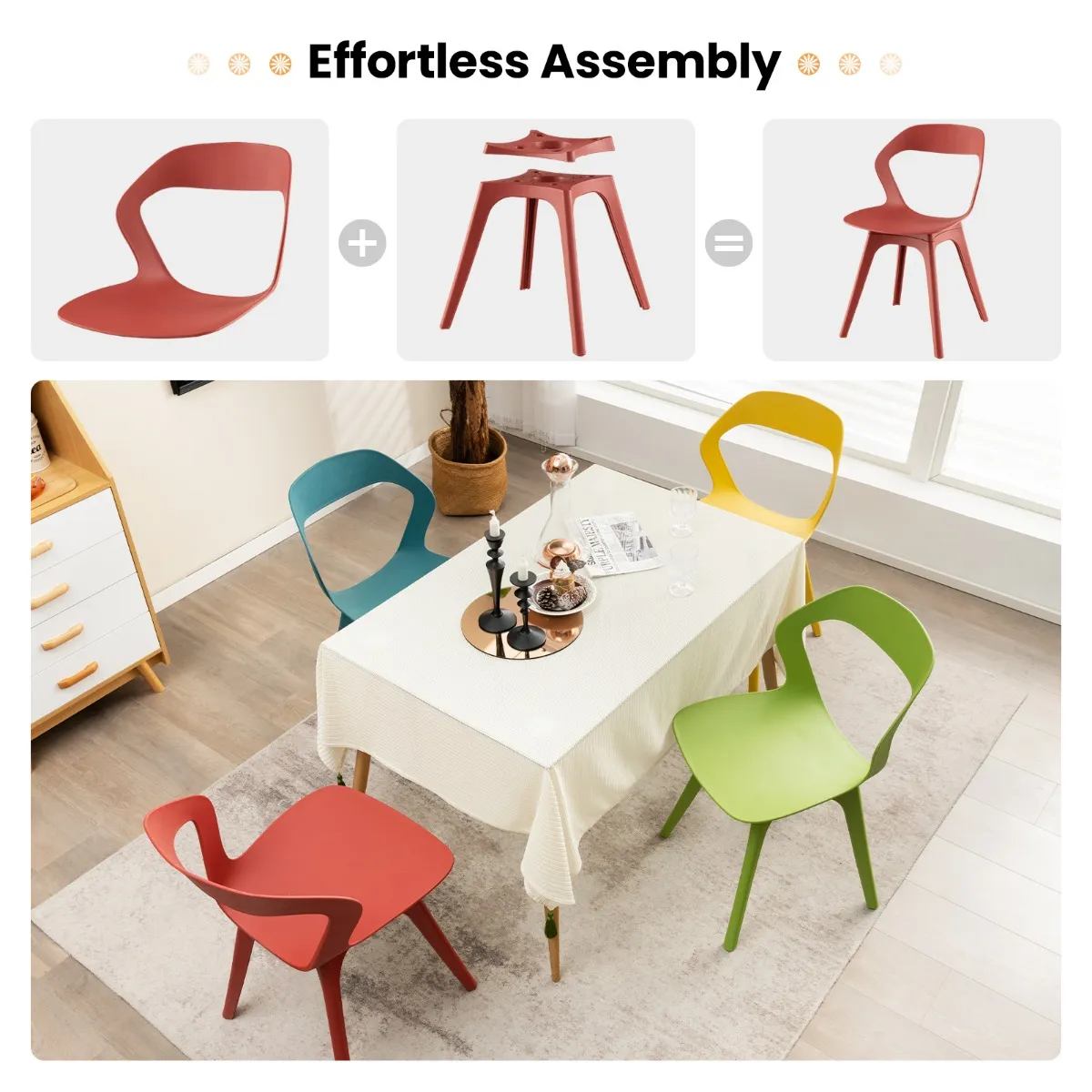 Superieur PP-materiaal: Elke accentstoel is gemaakt van hoogwaardig PP en heeft een hoge sterkte en betere duurzaamheid. Bovendien is het veiliger en ontstaan er geen onaangename geurtjes. Voor een eenvoudig onderhoud is elke eetkamerstoel braamvrij en waterdicht.