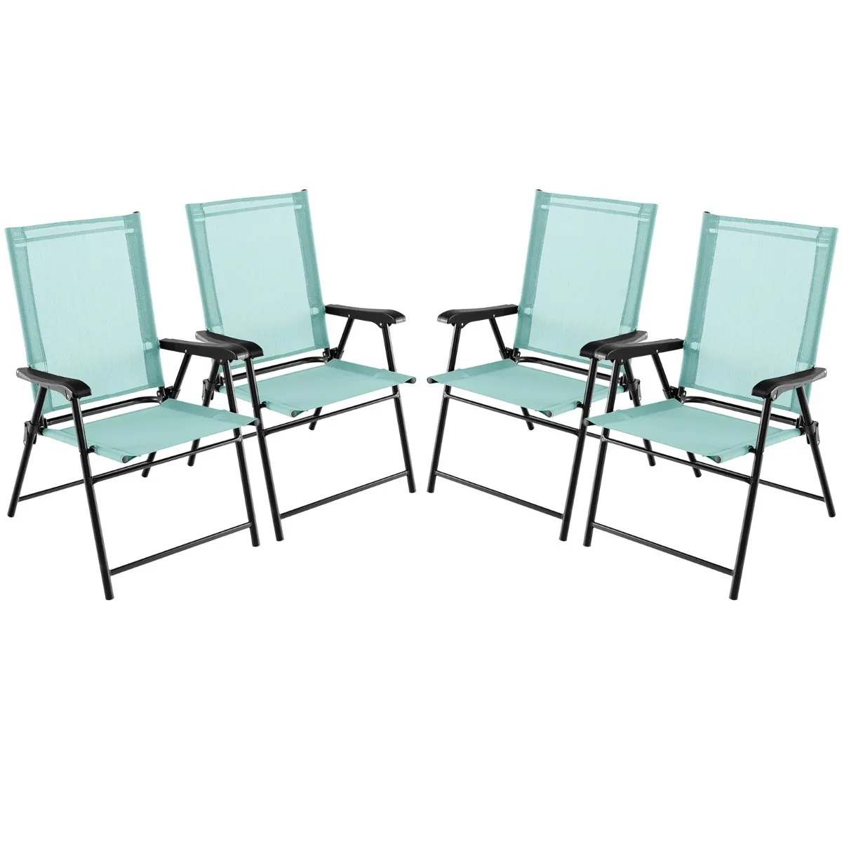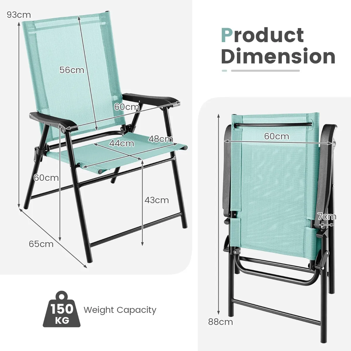 Set Van 4 Opvouwbare Terrasstoelen Draagbare Stoelen Met Rugleuning En Armleuningen En Metalen Frame Eetstoelen Voor Buiten-Groen
