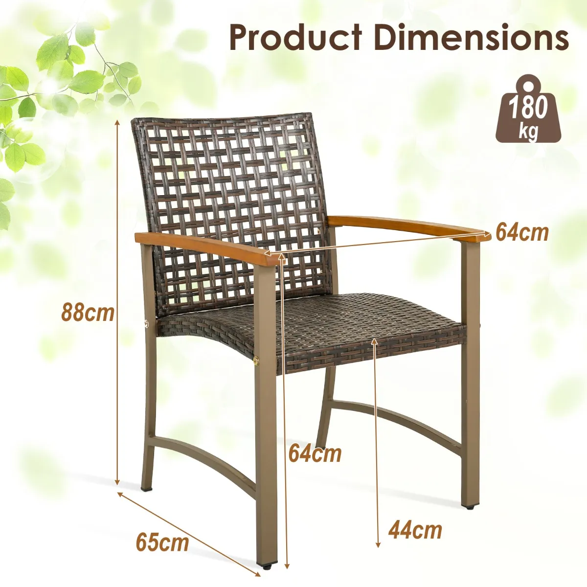 Set Van 4 Rotan Stoelen Voor Buiten Stoelen Met Acaciahouten Armleuningen Stevig Metalen Frame Ergonomische Stoelen Voor Balkon Zwembad