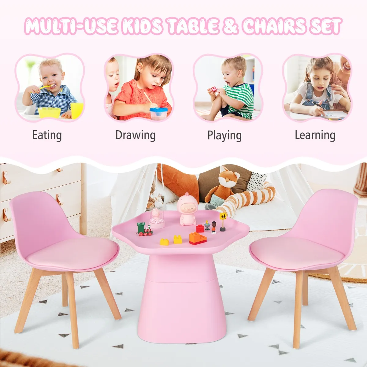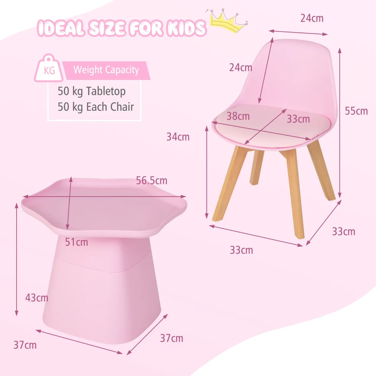 Tafel en stoelset voor kinderen: Ontworpen in de vorm van een aantrekkelijke en elegante bloem, zal deze schattige tafel en stoelset onmiddellijk de aandacht van kinderen trekken. De multifunctionele set kan voor veel activiteiten worden gebruikt, zoals leren, tekenen, spelen, eten en nog veel meer. Geschikte leeftijd: 3-8 jaar.