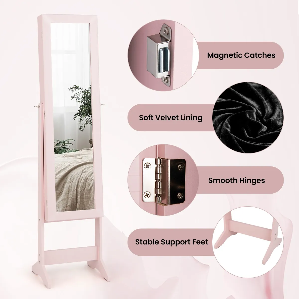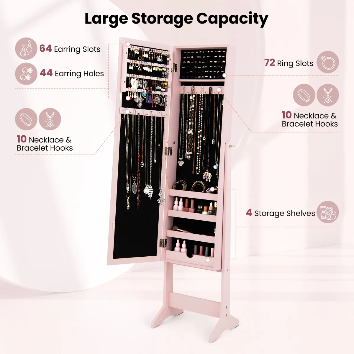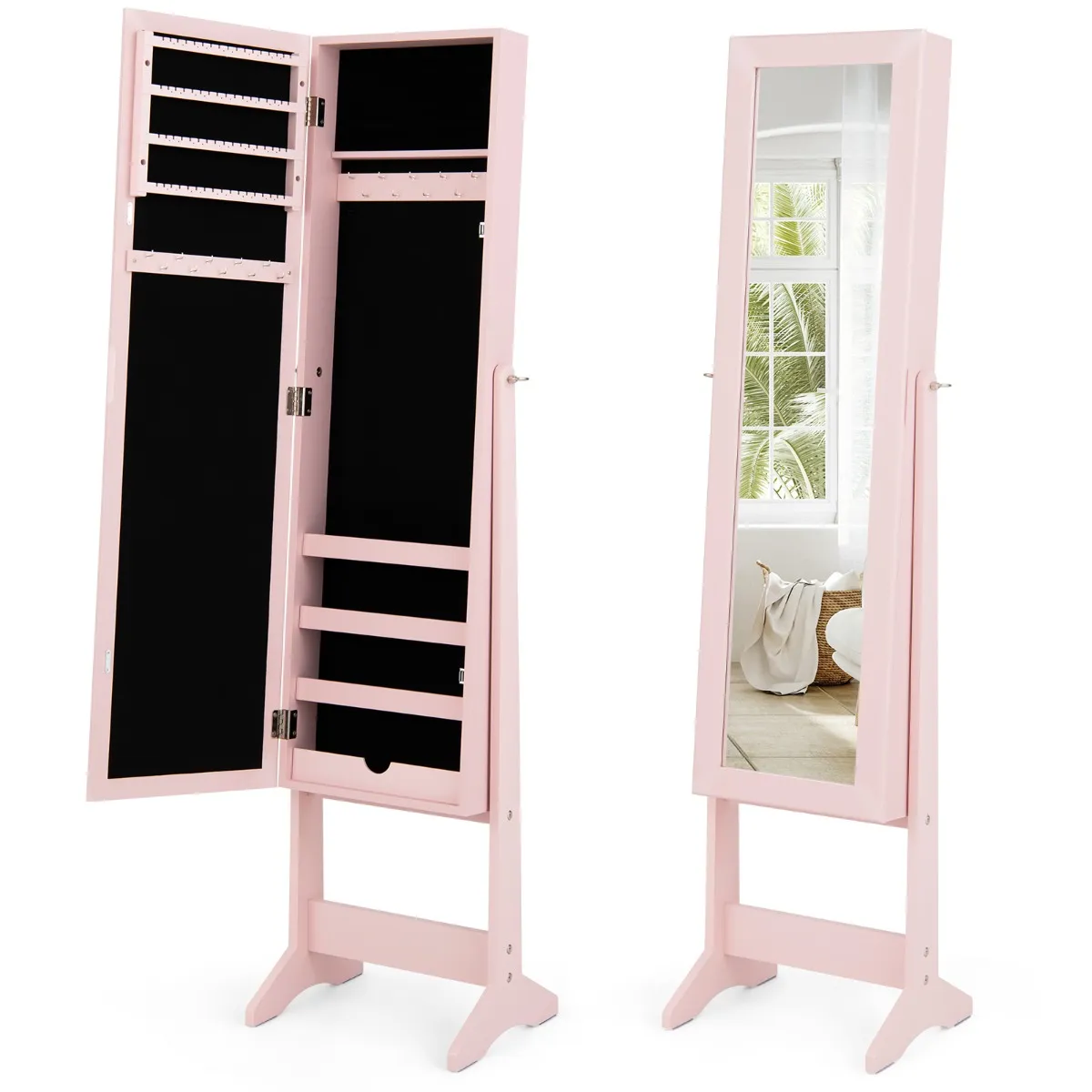 【2-in-1 spiegel & Kast】Gecombineerd met een spiegel en een juwelen organizer in een kast, kunt u met deze vrijstaande juwelen kast genieten van de dubbele voordelen en het eindeloze plezier van het aankleden. U kunt het gebruiken als een spiegel om u aan te kleden of als een praktische juwelenkast om uw waardevolle sieraden in op te bergen, waardoor u een schone en ruime ruimte heeft.