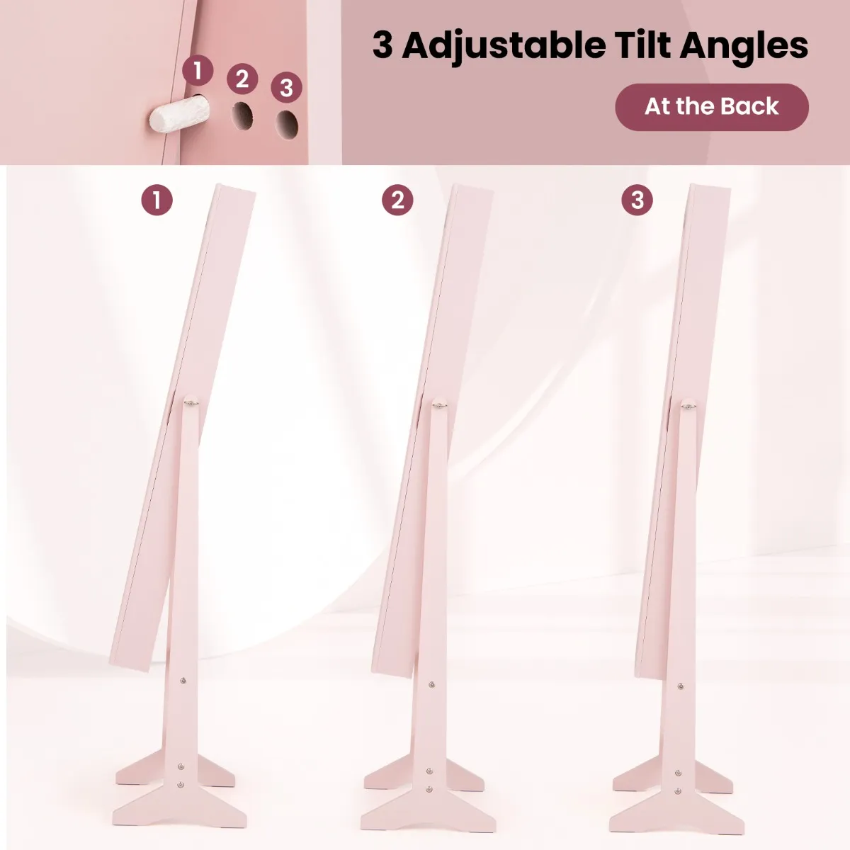 【3-hoekig kantelende spiegel over de volle lengte】3 kantelposities helpen u bij het vinden van de meest comfortabele afschuining in overeenstemming met uw hoogte. U kunt de spiegel vrij zwenken en de positie vastzetten met horizontale gaten. De spiegel over de volle lengte is perfect in de breedte en de hoogte om uw lichaam mooi te laten zien.