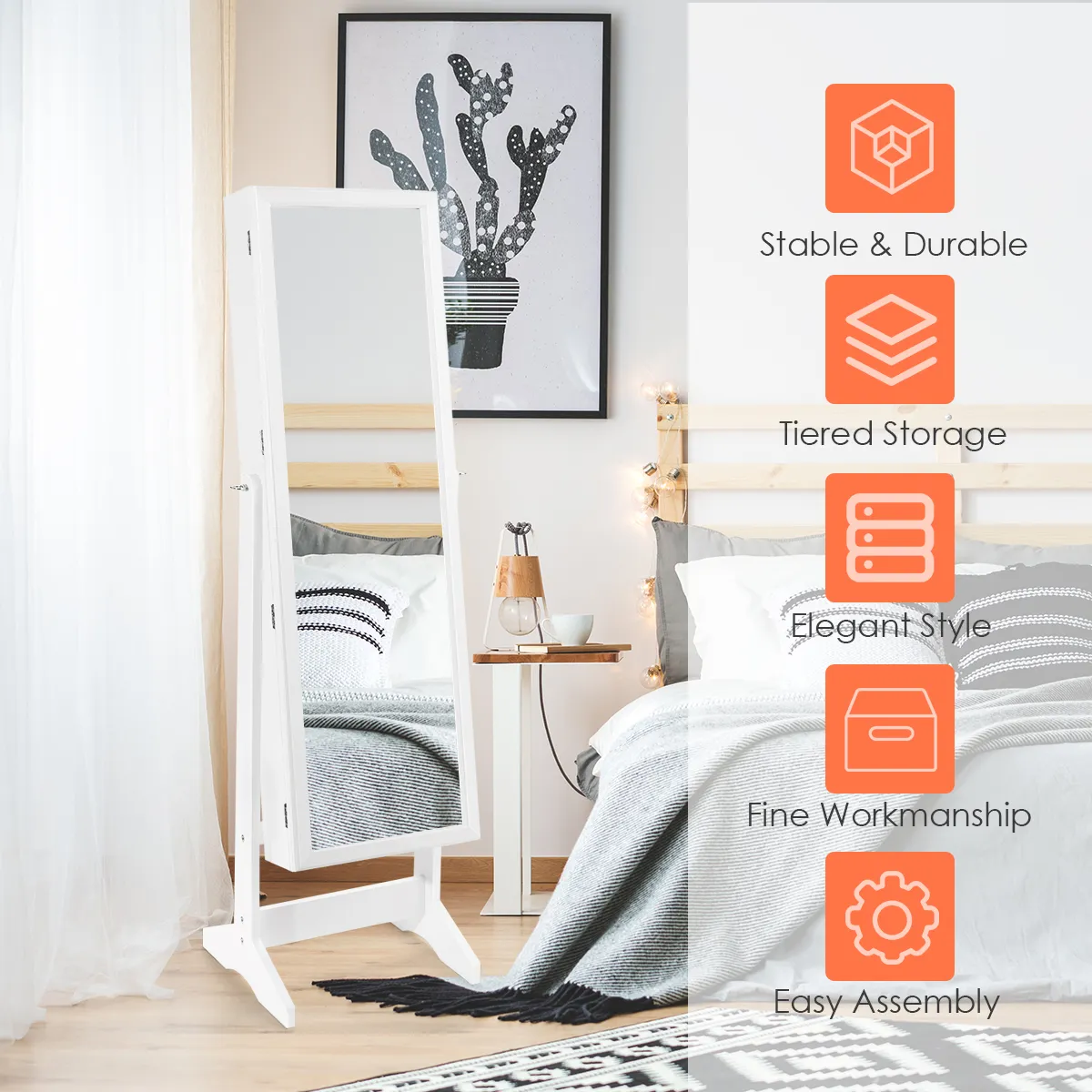 【2-in-1 spiegel en kast】Deze vrijstaande sieradenkast combineert een spiegel met een sieradenkast in een kast en maakt het mogelijk om te genieten van de dubbele voordelen en het eindeloze plezier van het aantrekken. Je kunt hem gebruiken als spiegel voor het aankleden of als praktische sieradenkast voor het opbergen van je waardevolle sieraden en laat een schone en ruime ruimte achter.