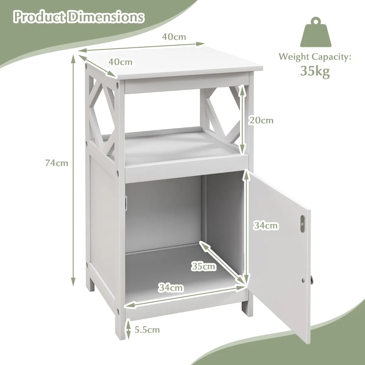 Onze kledingkast heeft één deur en 2 open legniveaus, zodat je genoeg ruimte hebt om je spullen te organiseren, zoals toiletartikelen, papieren, decoraties en boeken. Hij wordt geleverd met een anti-kantelset waarmee hij aan de muur kan worden bevestigd, voor meer stabiliteit en veiligheid. Of hij nu in de badkamer, woonkamer, slaapkamer of hal staat, hij voldoet aan al je opbergbehoeften terwijl hij weinig vloeroppervlak inneemt. Met zijn elegante look is hij modern en past hij in elk interieur.