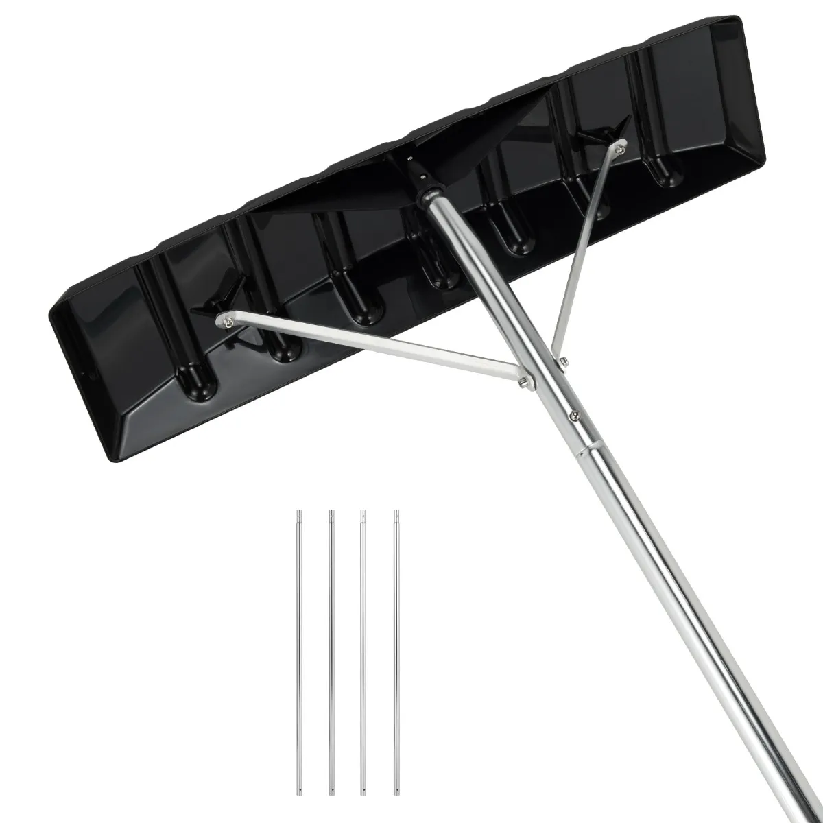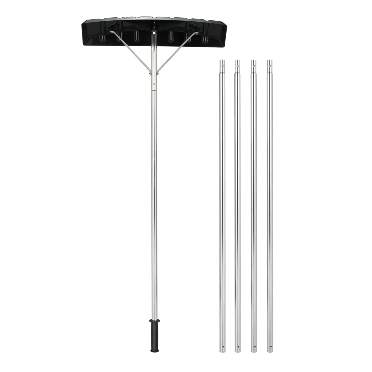 Met onze uitschuifbare sneeuwdakhark hoeft u zich geen zorgen meer te maken over sneeuw op moeilijk bereikbare daken! Je kunt de 4 uitschuifbare stangen vrij combineren met het stuur op de gewenste lengte. En het blad meet 63 x 15,5 cm, wat breed genoeg is voor sneeuwruimen. Bovendien zijn zowel het blad als de stok licht van gewicht, waardoor de sneeuwhark supergemakkelijk te besturen is. En het aluminium frame is roestbestendig en vervormbaar, wat een hoge stabiliteit en een lange levensduur garandeert. Deze hark is niet alleen geschikt voor sneeuw, je kunt hem ook gebruiken voor gevallen bladeren of andere zaken. Onze sneeuwdakhark zorgt elke winter voor een schoon en opgeruimd huisdak en autodak.