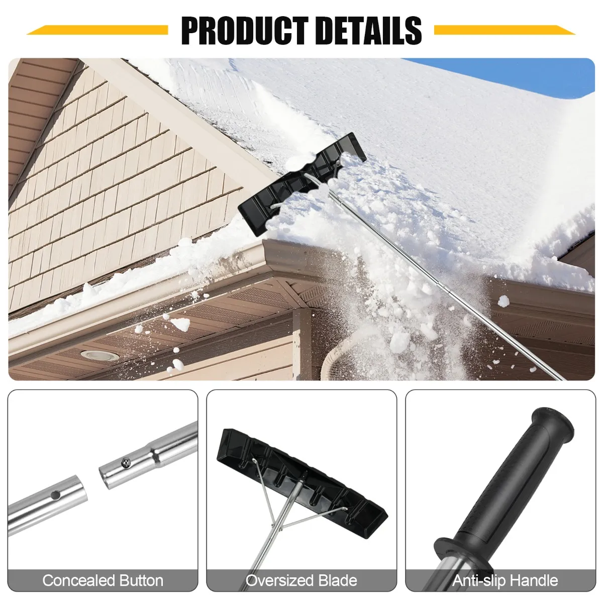Flexibele aansluitlengte tot 608 cm: Deze sneeuwdakhark wordt geleverd met 1 handgreep en 4 uitschuifbare stangen, zodat u door combinatie de lengte vrij kunt wijzigen van 1,48 tot 6,08 m. Hierdoor kunt u op elke hoek van het hoge dak de sneeuw bereiken zonder het risico te lopen op het dak te klimmen, waardoor uw veiligheid wordt gegarandeerd.