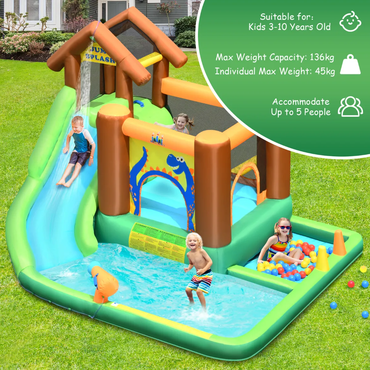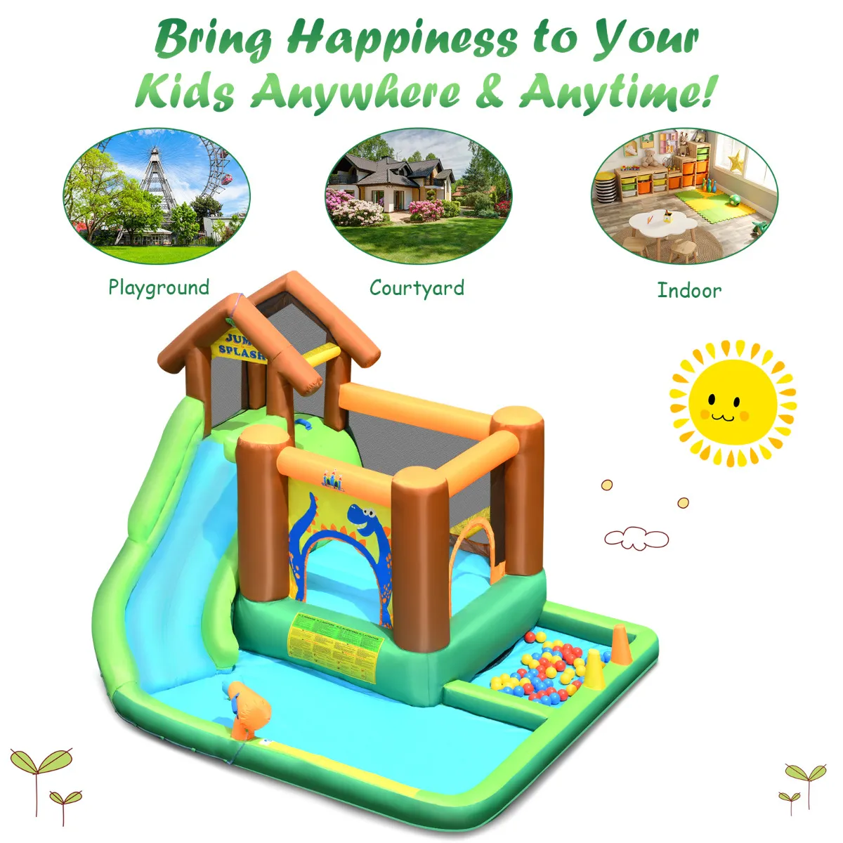 【Veelvoudige functies & Ruime spelmogelijkheden】Het luxueuze opblaasbare waterpark beschikt over een verscheidenheid aan functies zoals stuiteren, glijden, waterkanon, ballenbak bad en grote peddel bad. De kinderen kunnen beklimmingen, glijden, sprongen en spruiten ervaren, die intellectuele ontwikkeling terwijl het uitoefenen zullen bevorderen. Deze waterglijbaan is een rationele keuze voor familievermaak.