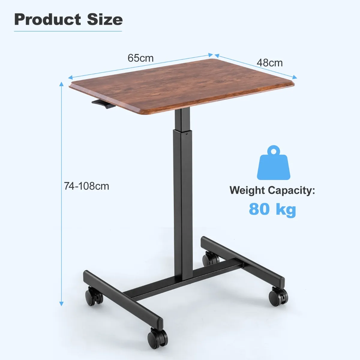 【Flexibele hoogteverstelling】: Het mobiele staande bureau kan van 74 cm tot 108 cm door een pneumatisch apparaat worden ingesteld, zodat je het bureau naar wens kunt aanpassen. Of je nu zit of staat, je kunt een perfecte ergonomische positie vinden voor aangenaam werken.