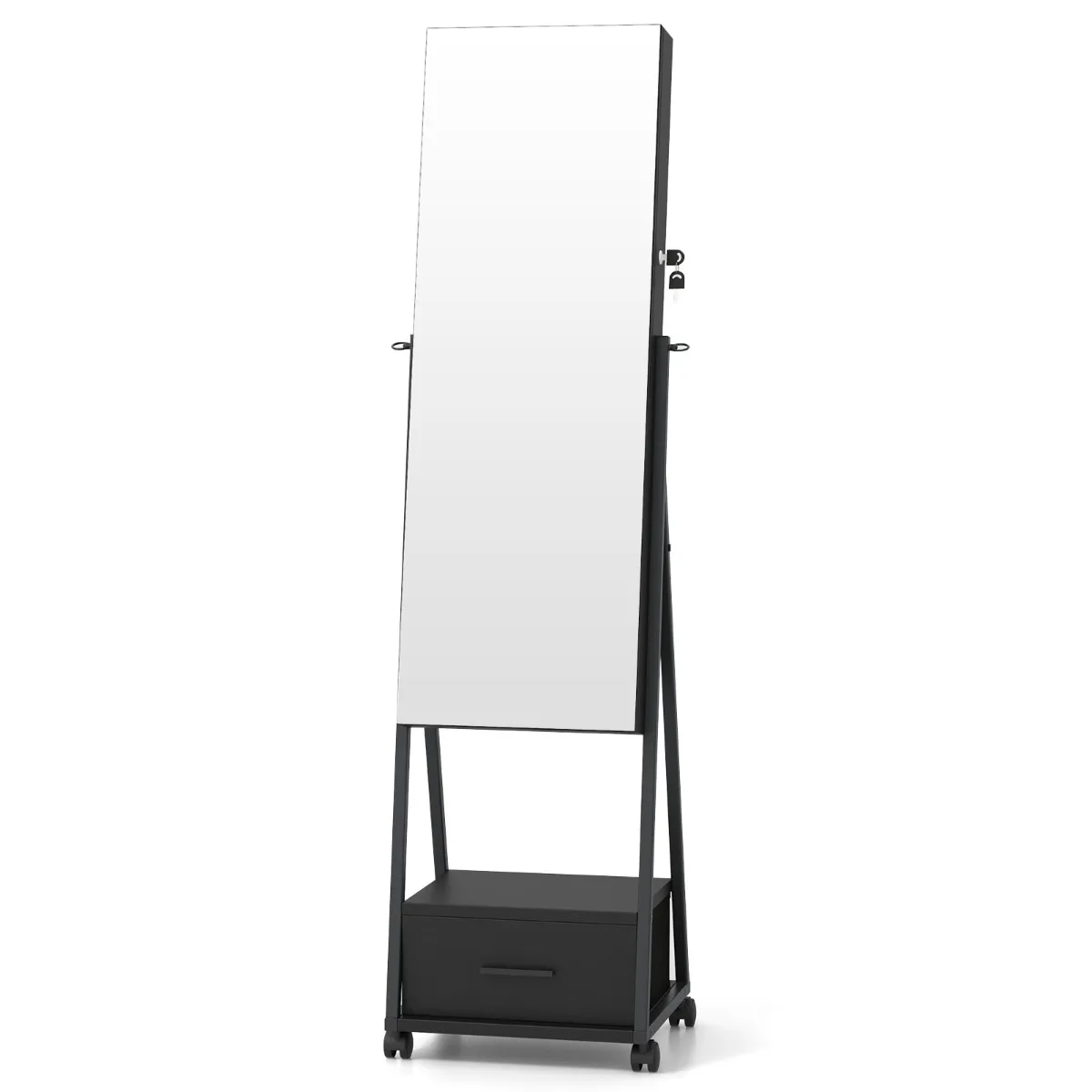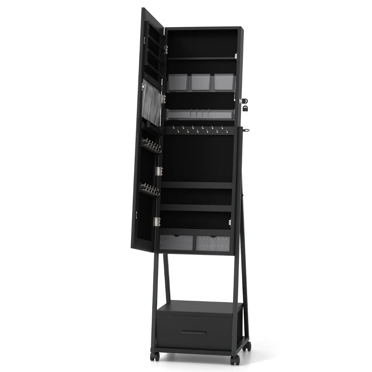 3-in-1 multifunctionele juwelenkast: Deze vrijstaande organizer combineert een doorlopende spiegel, opberglade, juwelen- en cosmeticakast in één meubel, waardoor de ruimte optimaal wordt benut. Bovendien biedt de spiegel over de hele lengte een breder zicht van top tot teen.