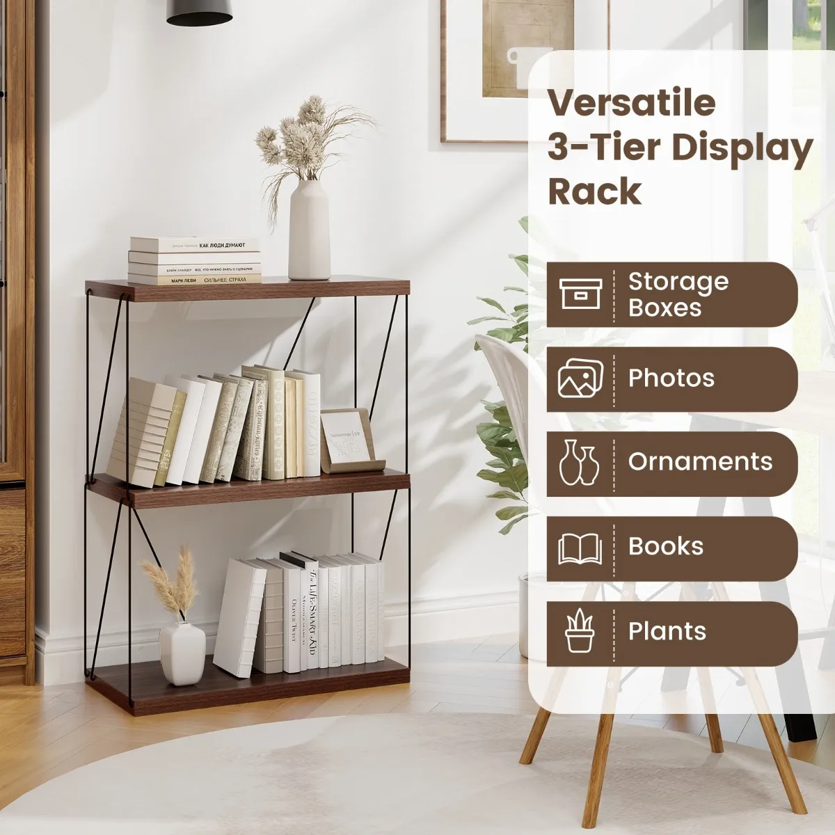 Deze veelzijdige standaard kan boeken, decoraties of zelfs opbergdozen bevatten