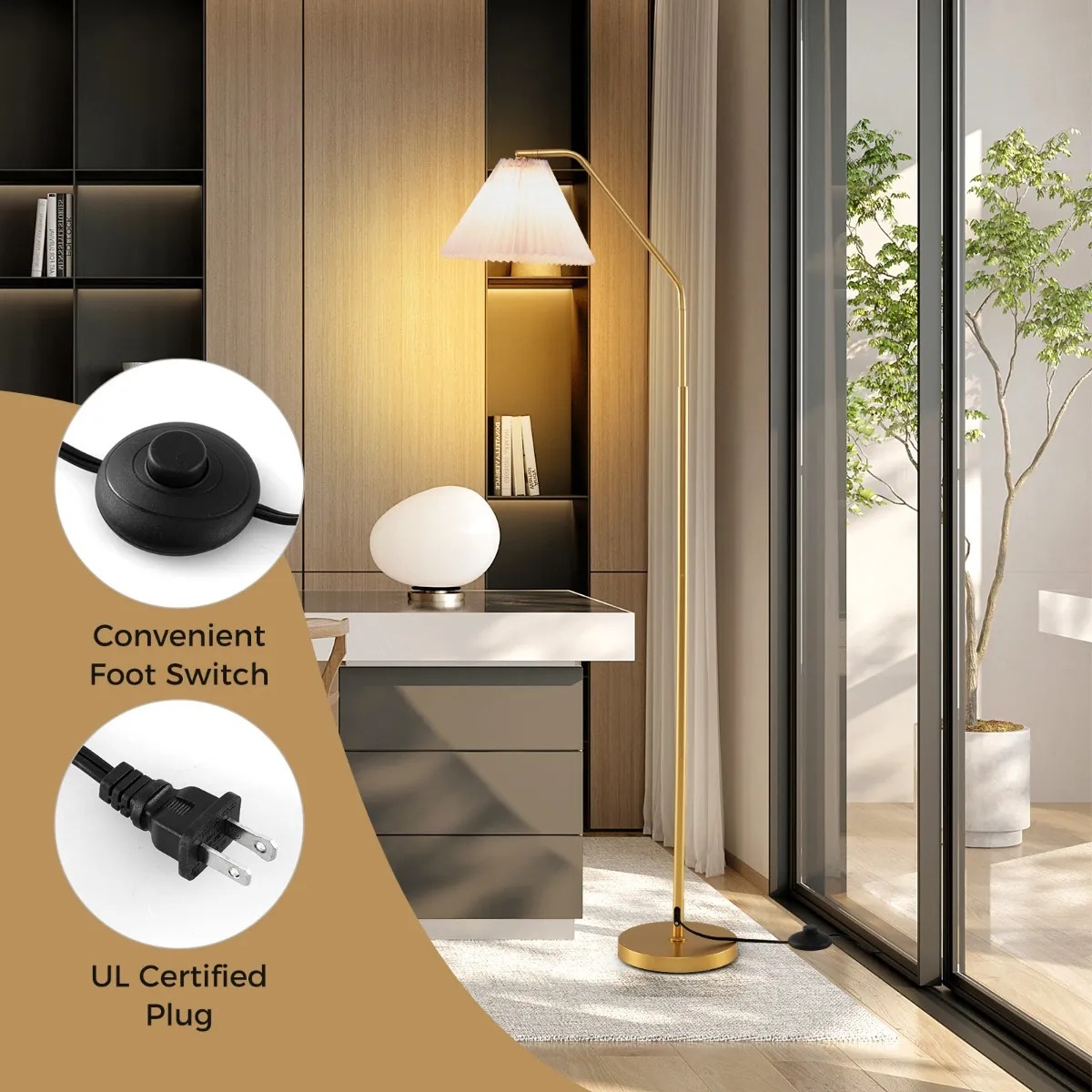 【Gebruiksvriendelijk】: Deze staande lamp heeft een geplooide lampenkap, die een vleugje elegantie toevoegt aan uw woonkamer, slaapkamer of kantoor. Met de handige voetschakelaar kunt u de lamp aan- en uitzetten zonder dat u hoeft te bukken.