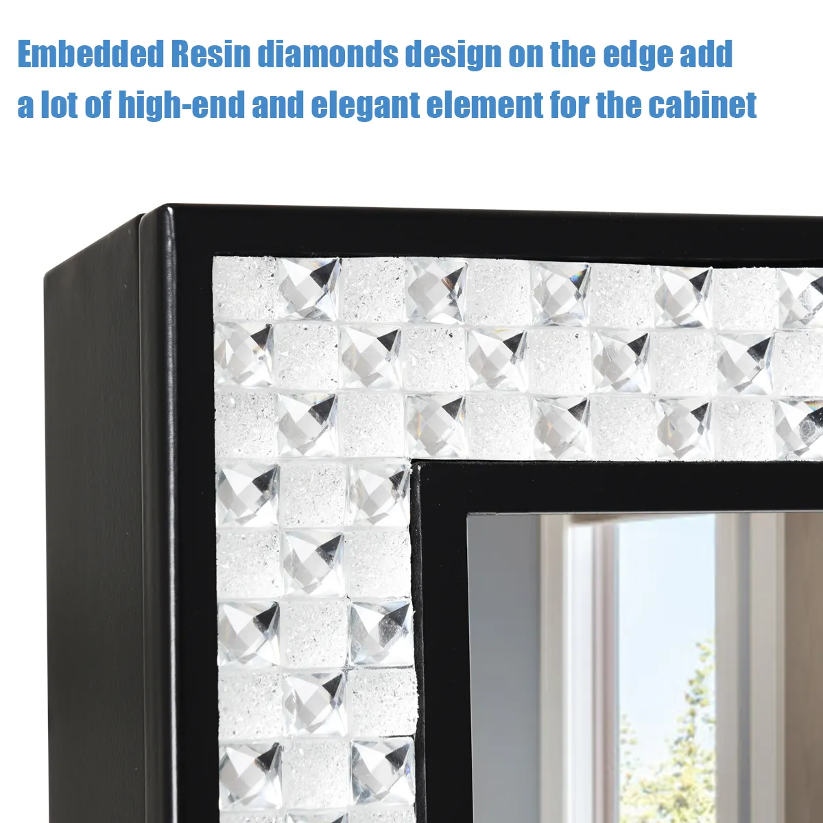 【Heldere spiegel omgeven door hars diamanten】Er is een glazen spiegel over de gehele lengte, die u van top tot teen kan bekijken, en die zeer duidelijk te zien is, wat perfect is voor de dagelijkse make-up routine. Rondom de vier zijden zijn er glinsterende hars diamanten versieringen, waardoor deze kast er nog oogverblindender uitziet.