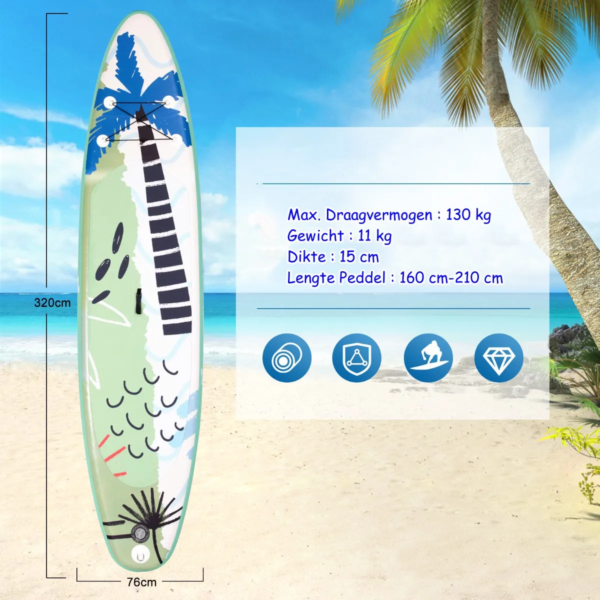 - Leveringsomvang: 1 x Stand-up paddle board1 x Verstelbare aluminium peddel met 3 schachten1 x Handpomp1 x Ventielsleutel1 x Reparatieset1 x Draagtas1 x Middenvin