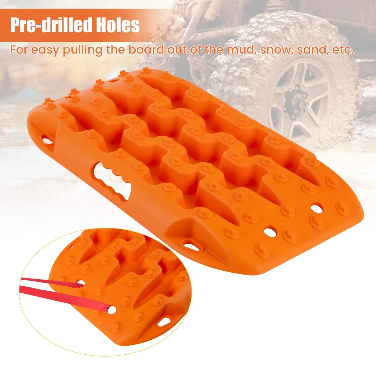 Licht en duurzaam materiaal: Dit offroad-tractiebord bestaat uit versterkt nylonmateriaal en is zo ontworpen dat het bestand is tegen extreme temperaturen van -30 °C tot 60 °C, waardoor het geschikt is voor gebruik het hele jaar door. Dit materiaal is bovendien lichtbestendig, uv-bestendig en corrosiebestendig.