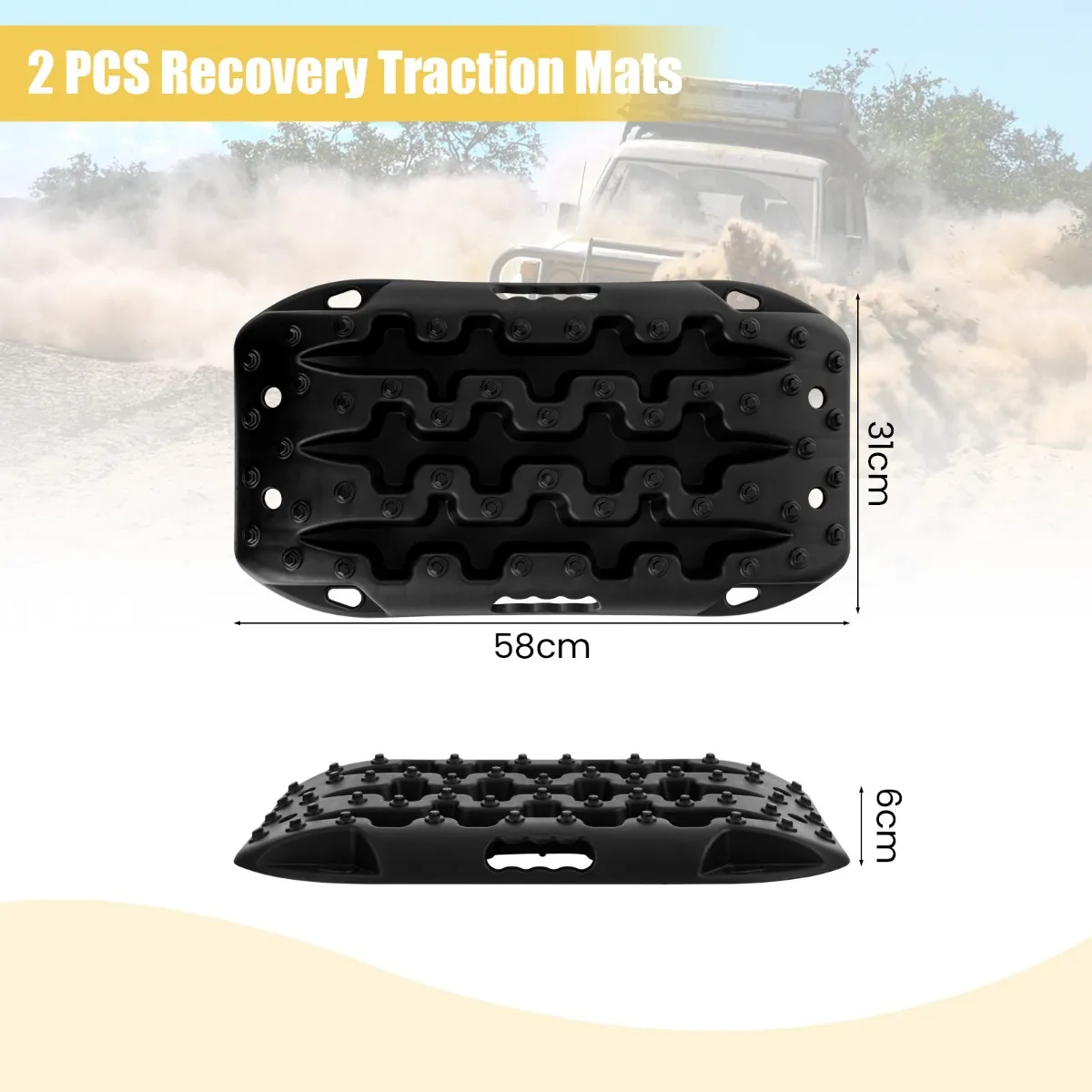 Veelzijdige tractiematten voor de berging: Elke tractiemat is zo gevormd dat hij onder de meeste banden past. Bij de levering zijn 2 tractiematten inbegrepen, die samen 2,5/5,5 kg wegen. De voor- en achterkant van de tractiemat zijn uitgerust met verbeterde noppen, die goed gepositioneerd zijn om in de banden te grijpen en het doordraaien van de voertuigbanden te voorkomen.