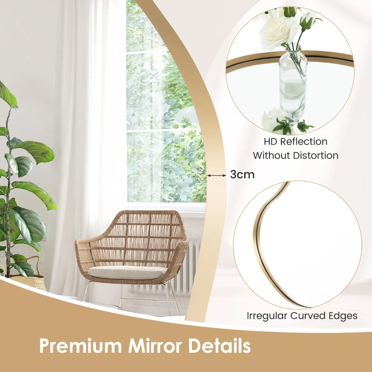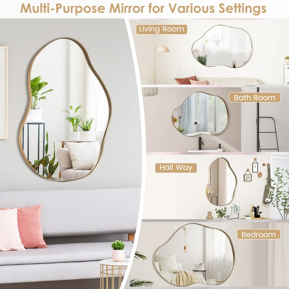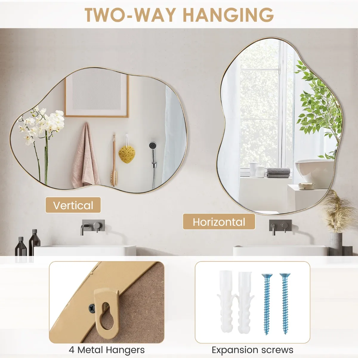 Asymmetrische badkamerspiegel: Anders dan traditionele spiegels heeft deze decoratieve spiegel een asymmetrisch ontwerp, dat een vleugje uniekheid toevoegt en meteen in het oog springt. Bovendien verbetert het onderscheidende ontwerp de algehele esthetische waarde van de ruimte, waardoor het een perfect middelpunt is voor elk interieur.