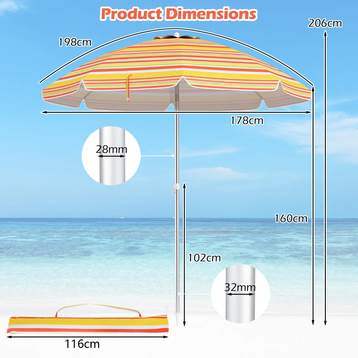- Leveringsomvang: 1 x Strandparasol1 x Draagtas
