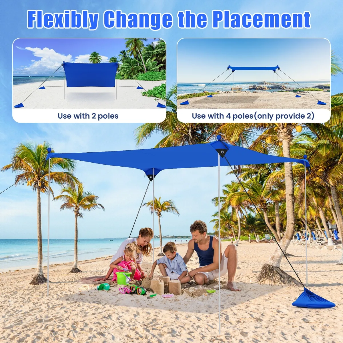Onze draagbare strandschuilplaats is perfect voor buitenliefhebbers. De strandluifel is gemaakt van scheurbestendig polyester-lycra, wat een ongeëvenaarde duurzaamheid biedt. Met UPF-bescherming fungeert het strandscherm als vaste vesting tegen de schadelijke stralen van de zon. Uitgerust met scheerlijnen en 4 haringen voor een veilige fundering. Door de toevoeging van 4 zandzakken kun je je schaduwrijke schuilplaats stevig verankeren, door ze met zand, aarde of gladde stenen te vullen. Bovendien vergemakkelijken de aluminium stangen de moeiteloze installatie en introductie, wat het aan verschillende terreinen aanpasbaar maakt. En je kunt de plaatsing flexibel veranderen door het aantal steunstangen aan te passen. Bovendien is de 2,6 kg lichte strandzonwering met draagtas draagbaar voor onderweg avonturen.