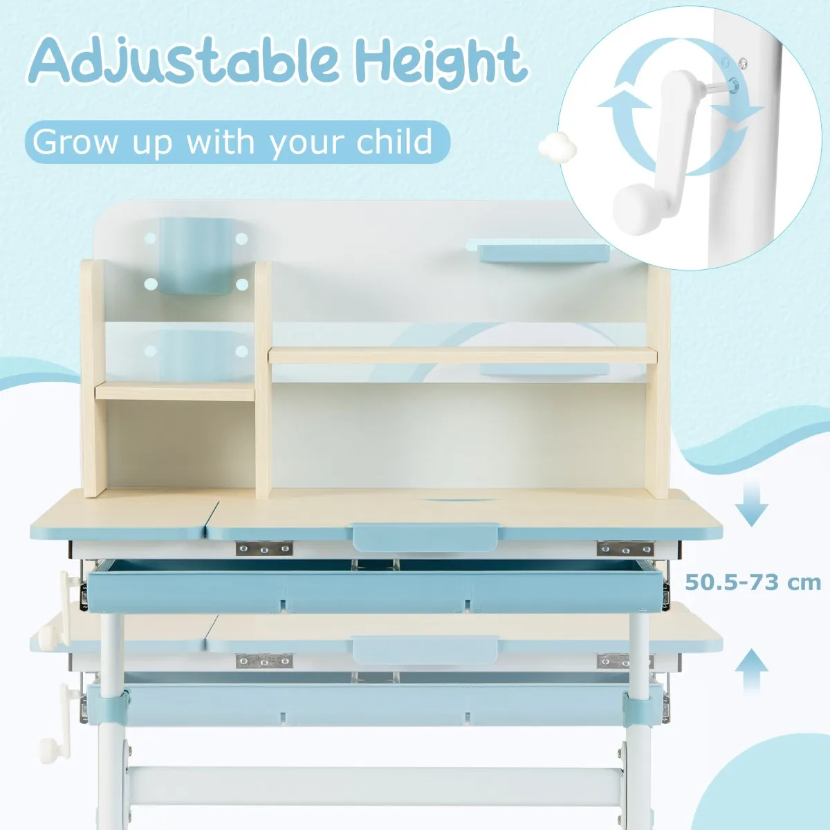 Studiebureau Voor Kinderen In Hoogte Verstelbare Schrijftafel Kantelbaar Blad Kinderbureau Met Hok Lade Penhouder Meetlat-Blauw
