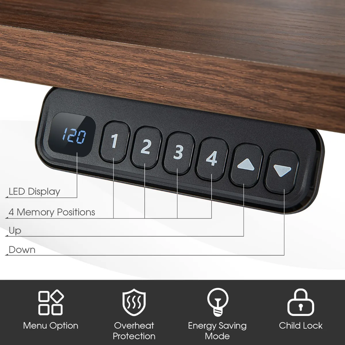 【Smart geheugencontroller】Dit elektrische sta-bureau frame is uitgerust met een intelligente drukknop controller die 3 geheugenstanden heeft, op/neer bewegingscontroles en LED-display om de huidige omstandigheden weer te geven. De lengte-eenheid kan worden omgeschakeld volgens uw voorkeur, om aan verschillende behoeften te voldoen.