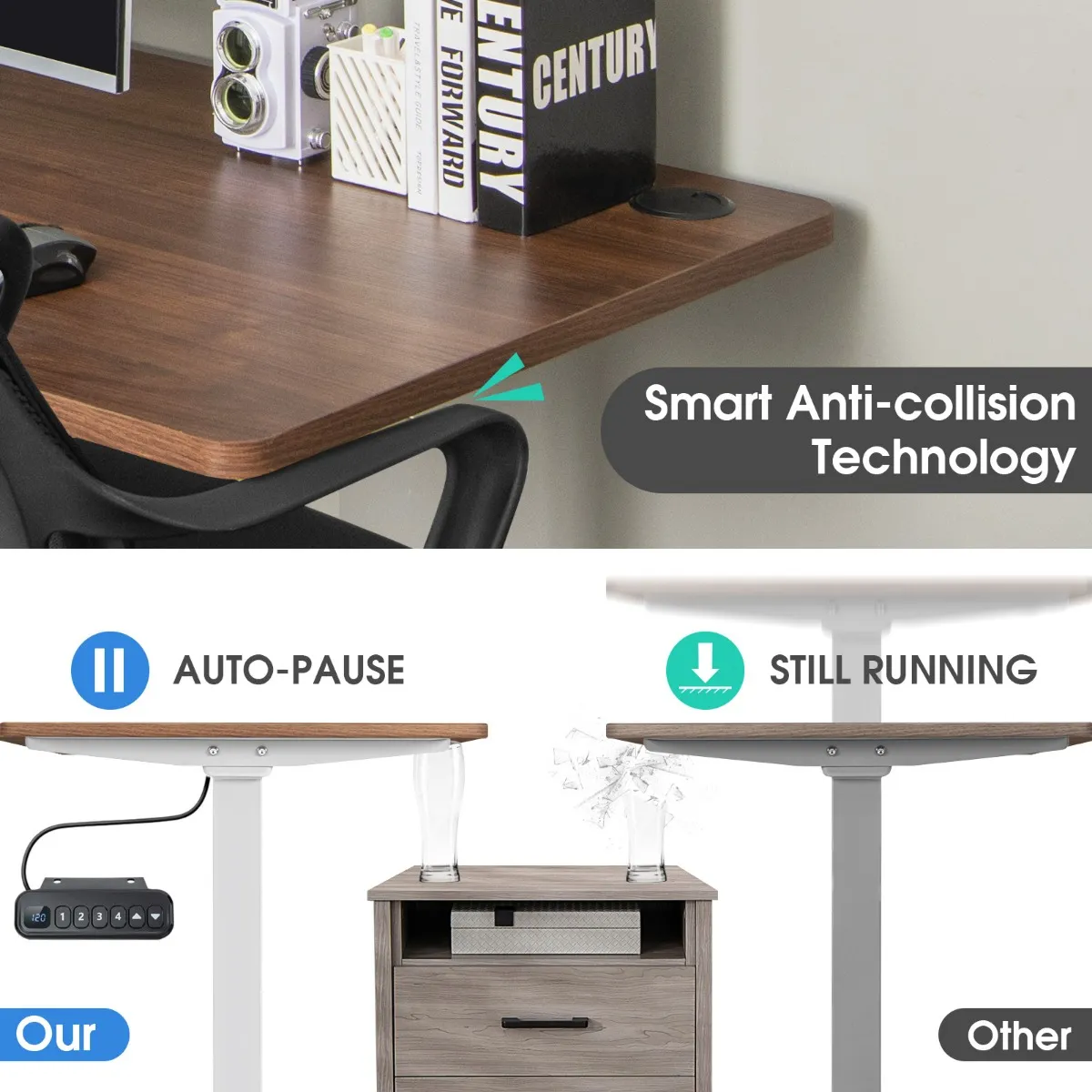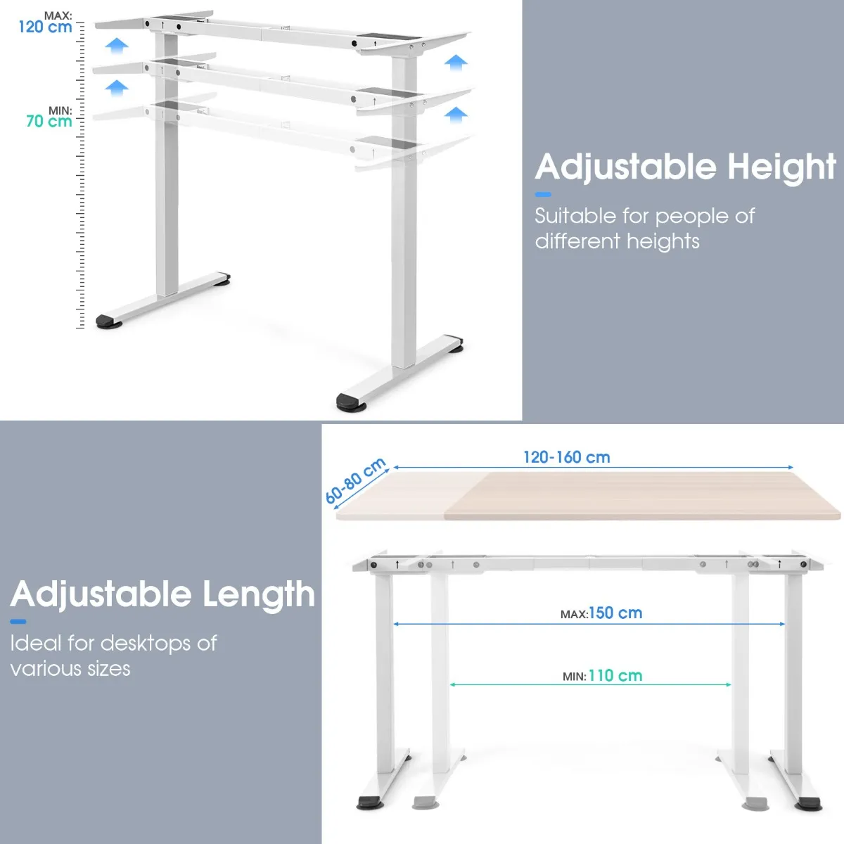 Dit verstelbare bureau frame is voorzien van een dubbele motor hefsysteem dat zorgt voor een soepele en stille werkprestaties. Met een druk op de knoppen op de bedieningskast kunt u de hoogte in enkele seconden instellen en de ideale positie opslaan voor later gebruik. De zware stalen structuur zorgt voor een grote duurzaamheid en een hoger draagvermogen. De oververhittingsbeveiliging verhoogt de gebruiksveiligheid naar een hoger niveau. Om te voorkomen dat de tafel stoot of krassen oploopt, is hij ook ontworpen met een geavanceerde ingebouwde anti-botsingsfunctie. Bovendien kan het elektrische onderstel worden verlengd van 72 cm tot 120 cm, zodat u een tafelblad van verschillende afmetingen kunt installeren.