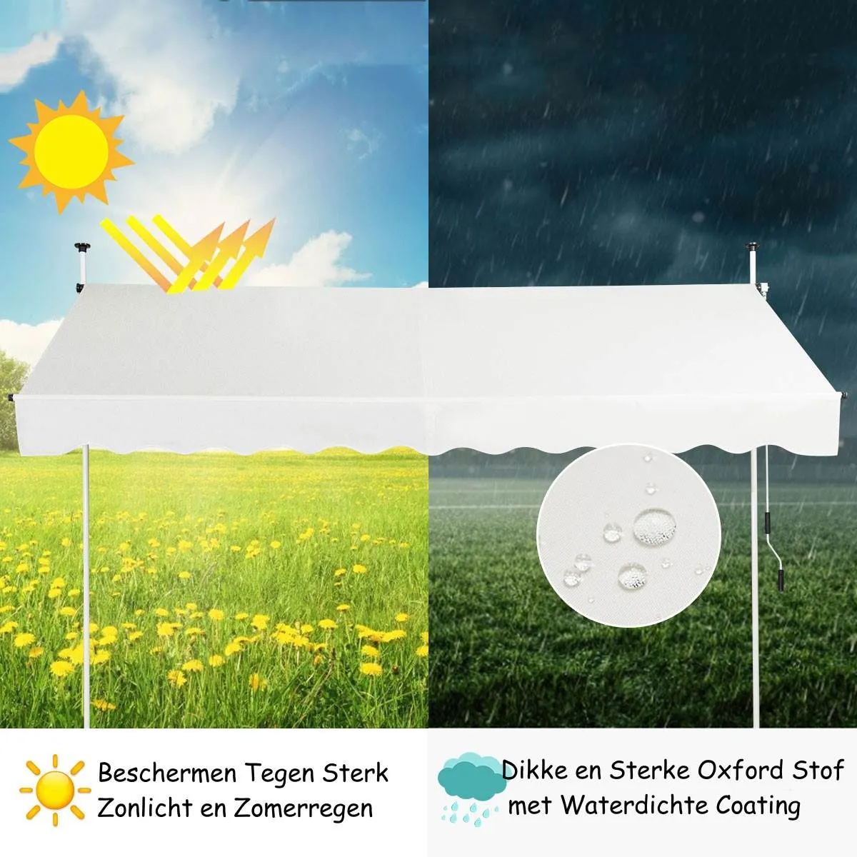 295 X 250 Cm Uitschuifbare Luifel Aluminium Terraszonnescherm Met Handzwengel Gemaakt Van Waterafstotend Polyester