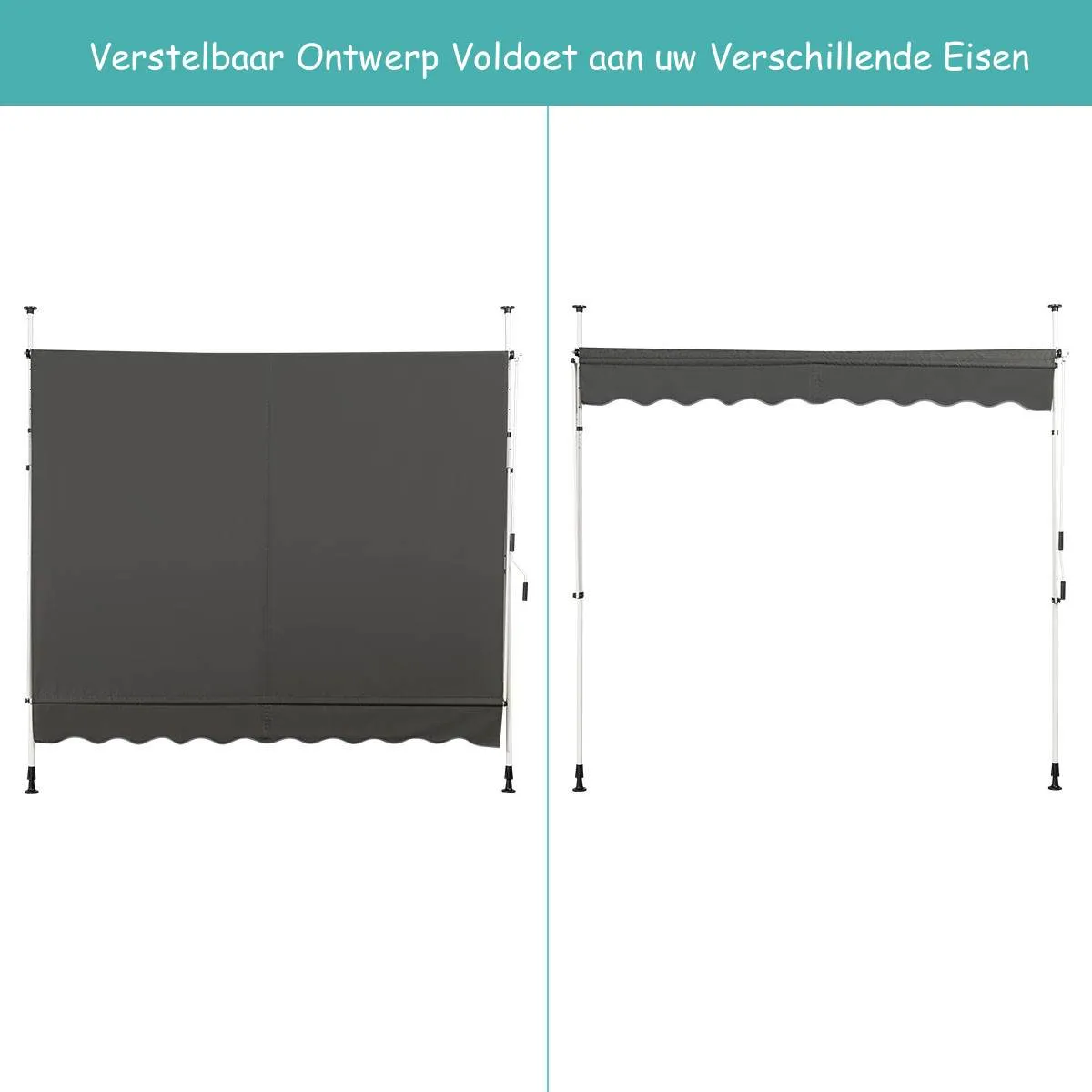 Telescopische Luifel Zonnescherm Uitschuifbare Luifel Zonnescherm Uv-bestendig Waterdicht Luifel 395 Cm Breed Grijs