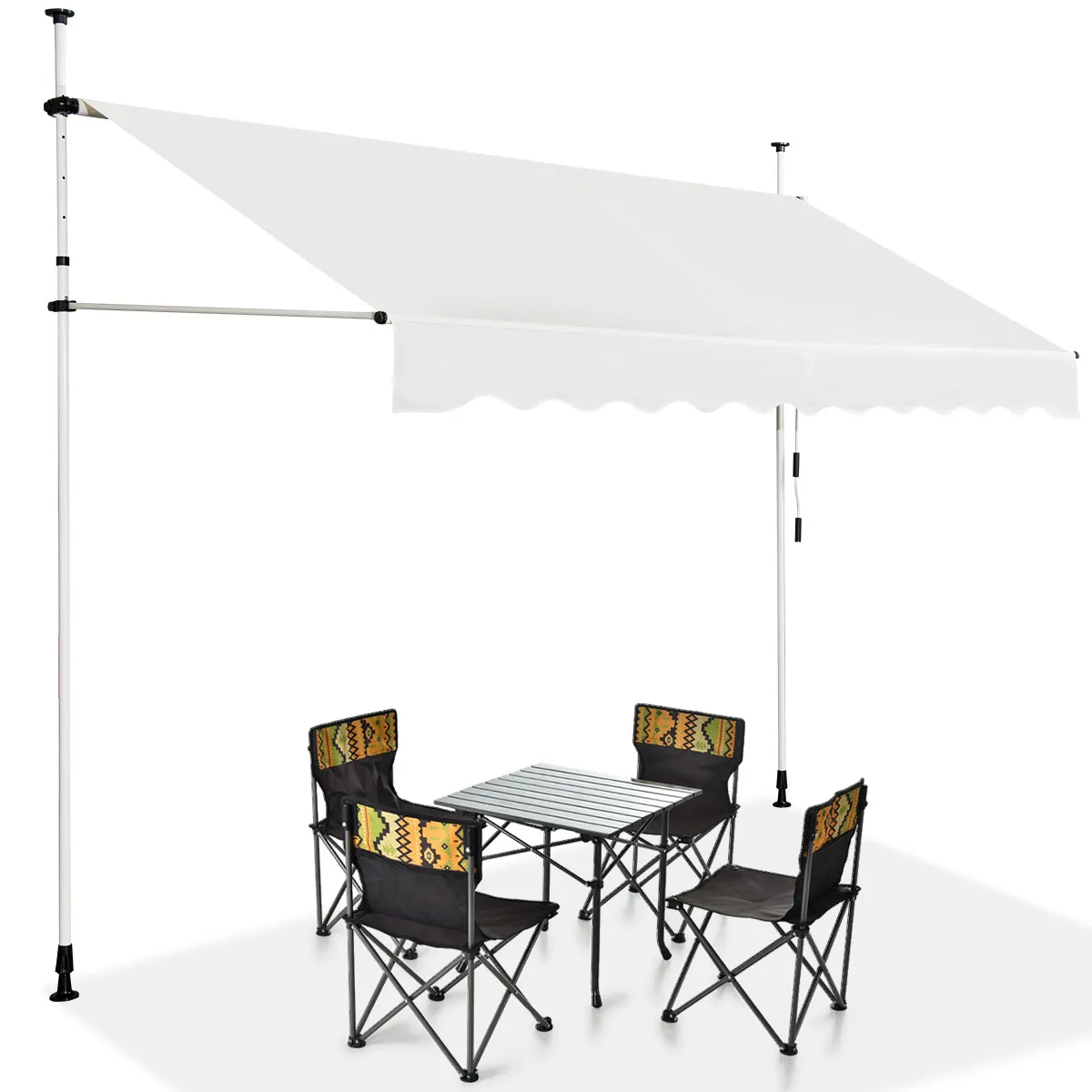 【Goed geselecteerde materialen】Gebouwd met stevige aluminium frame, onze buiten luifel is duurzaam genoeg om een lange periode van het leven te garanderen. Elk onderdeel is stevig verbonden tot een stabiele structuur die sterke ondersteuning biedt aan een bepaalde schaal van wind te weerstaan. En met de premium Oxford-stof die weerbestendig is, is deze zonwering bestand tegen vervagen, vocht en stof.