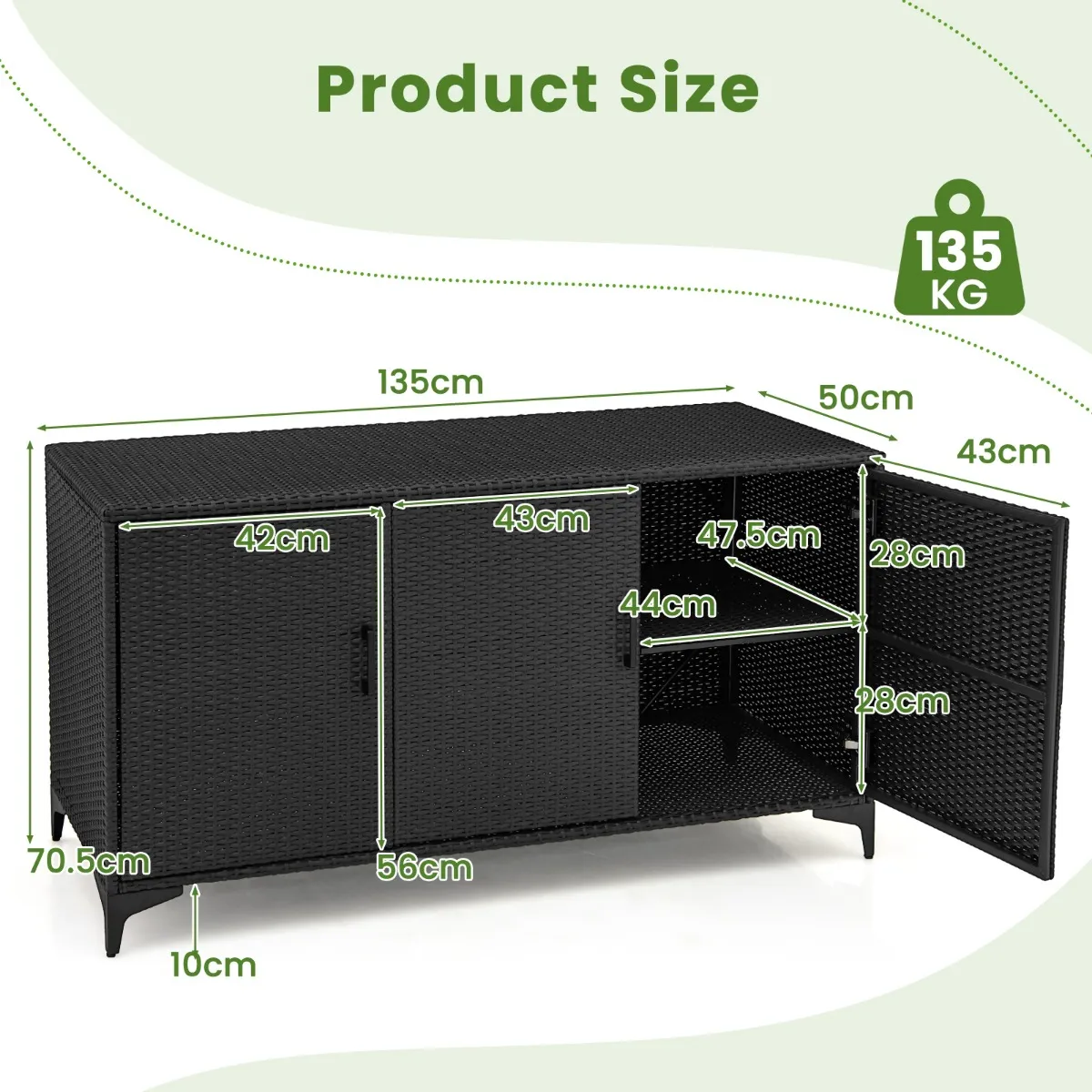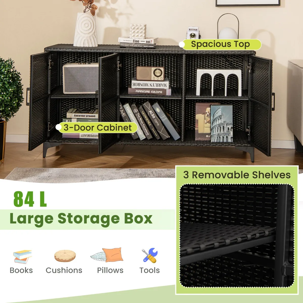 Terras Opbergbox Van Geweven Hars 318 L 3 Deuren Met Verwijderbare Planken Grote Waterdichte Bak Voor Kussens Gereedschap-Zwart