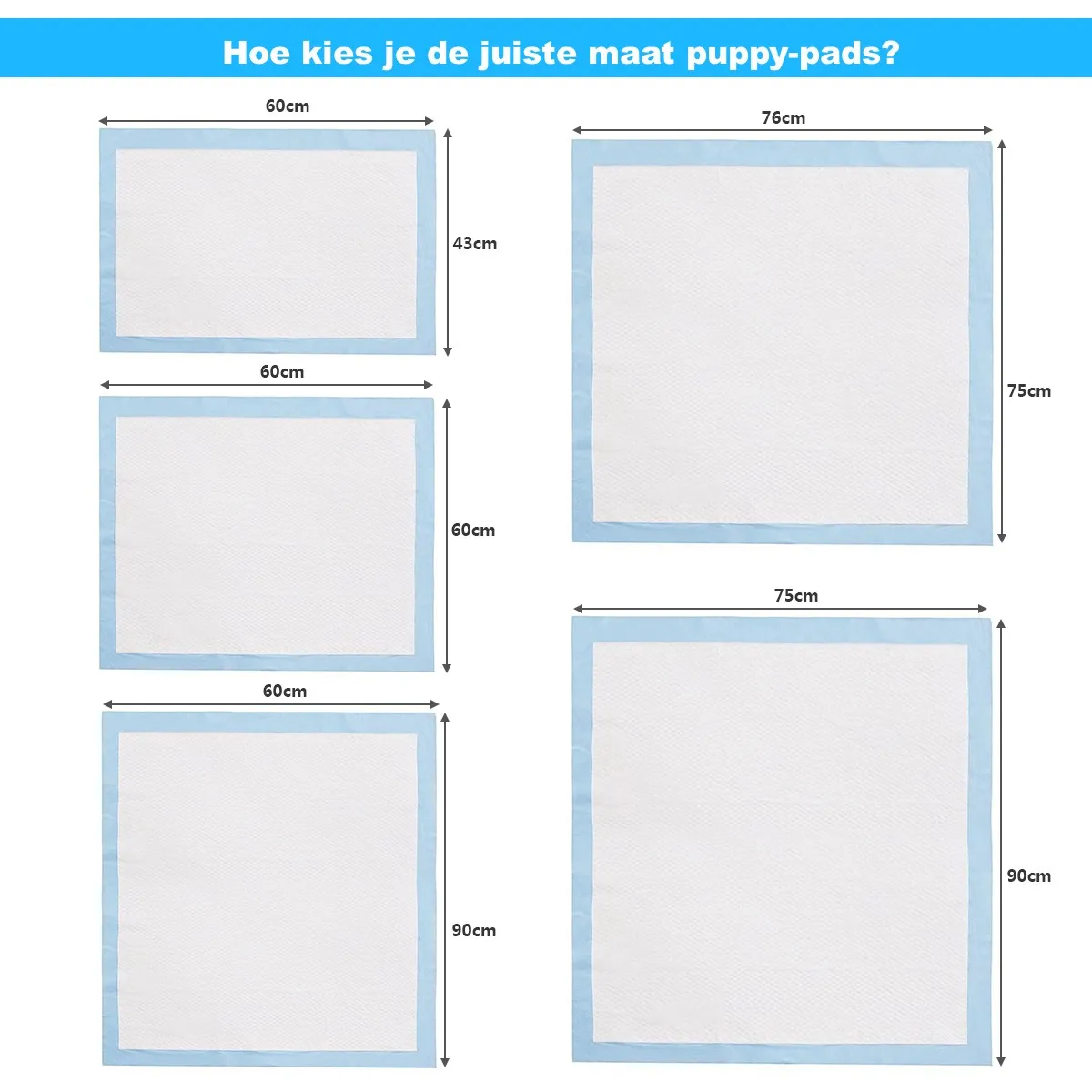 Onze wegwerponderleggers hebben 5 lagen om onmiddellijke absorptie en het voorkomen van lekken te garanderen. Onze van eersteklas materialen vervaardigde onderleggers zijn duurzaam, huidvriendelijk en zacht. Bovendien passen ze in de juiste maat aan de behoeften van de meeste huisdieren en kunnen ze op meerdere manieren worden gebruikt. Bovendien zijn de speciaal voor honden ontworpen onderleggers goed geschikt voor puppytraining, ter ondersteuning van oudere honden of als schoon alternatief voor buiten. Je kunt ze overal gebruiken waar je onvoorspelbare ongelukken of dagelijkse rommel wilt voorkomen. Deze trainingspads absorberen urine effectief en betrouwbaar en bieden een eenvoudige en probleemloze reiniging.