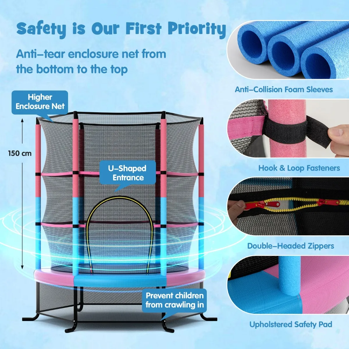 Trampoline Voor Kinderen Kleuter Trampoline Met Veilige Bescherming Net En Spring Pad Binnen En Buiten Recreatieve Trampoline Roze