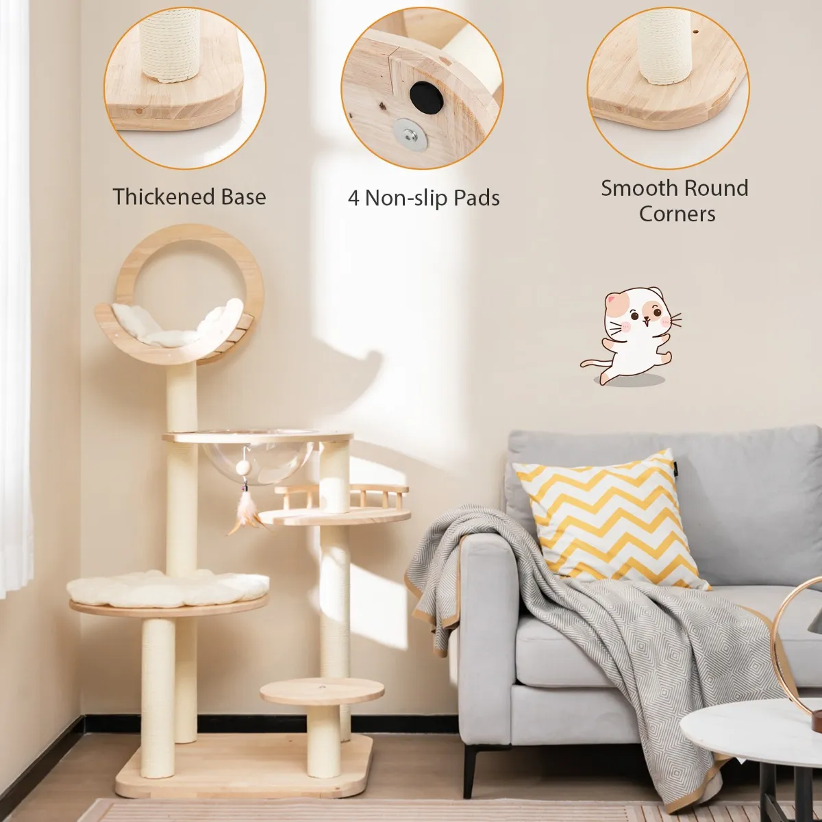 Duurzame en stabiele structuur:Â De kattenboom met meerdere niveaus is goed uitgebalanceerd met een brede, verdikte basis. De gehele constructie is gemaakt van massief rubberhout, dat bekend staat om zijn robuustheid en scheurvastheid, waardoor een lange levensduur wordt gegarandeerd.