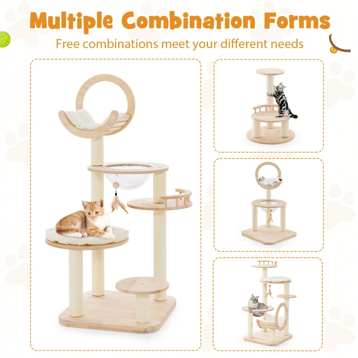Verstelbaar en stijlvol ontwerp: De kattenboom kan in 4 verschillende vormen worden gemonteerd, zodat u een klimstandaard kunt creëren volgens uw persoonlijke voorkeuren en kamerindeling. Bovendien is het met zijn balkonvormige platform en ruimtecapsule een chique toevoeging aan elke kamer.