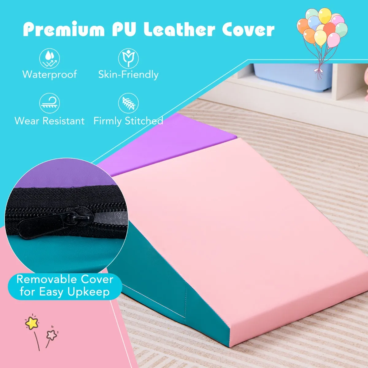 Deze zachte speelset is gemaakt van EPE-schuim met een hoge dichtheid en biedt een veilig en comfortabel speeloppervlak. Het lopen en glijden van de klimtoestellen bevordert niet alleen de fysieke activiteit, maar verbetert ook de grove motoriek en de zintuiglijke ontwikkeling en helpt bij het evenwicht, de coördinatie en de kracht. De PU-bekleding is gemakkelijk schoon te maken en te onderhouden voor de speeltijd van je kind. Klittenband zorgt voor een stevige verbinding tussen de schuimrubberen blokken, waardoor verschillende speelconfiguraties mogelijk zijn, zoals klimmen, glijden en kruipen.