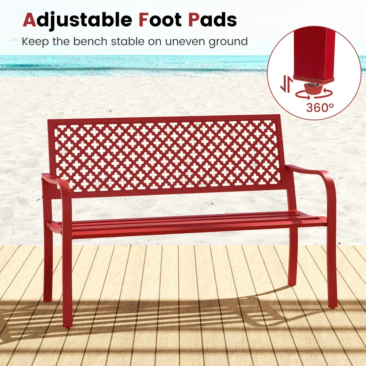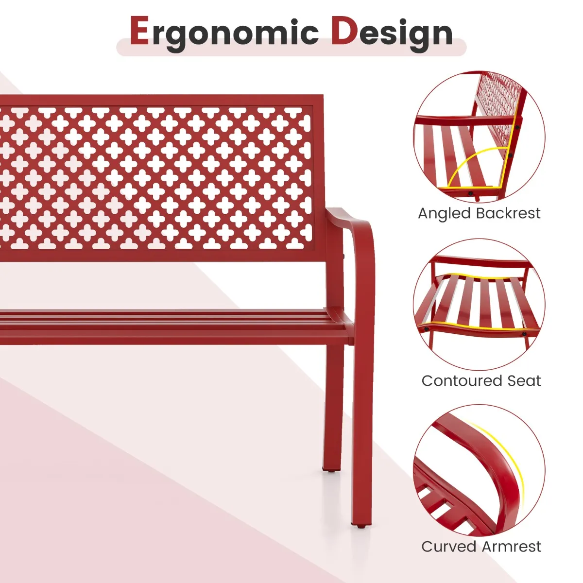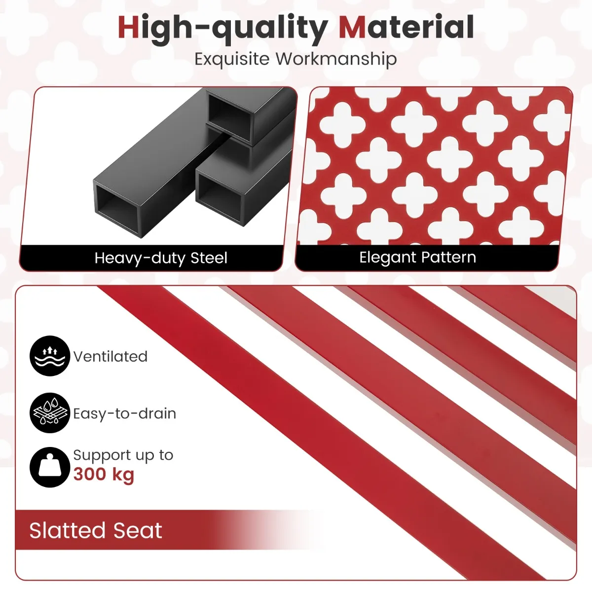 Elegante opengewerkte rugleuning: De tuinbank voor buiten heeft een opengewerkte rugleuning met een elegant patroon dat een vleugje verfijning aan uw buitenruimte toevoegt. Het zal een visueel aantrekkelijke toevoeging zijn aan elke tuin of terras.