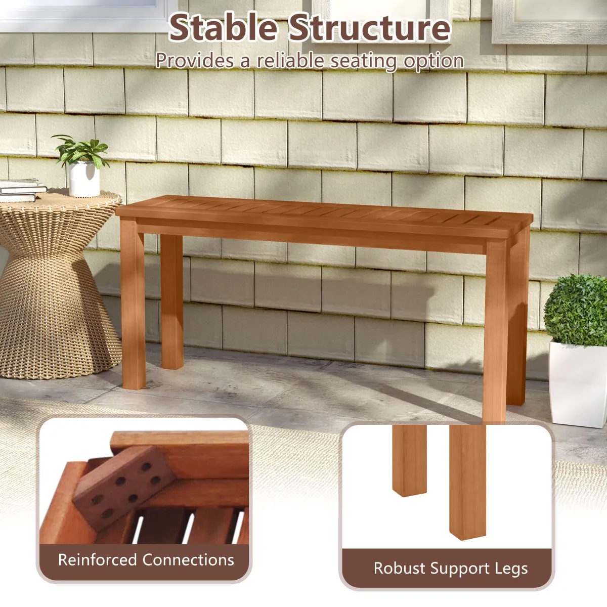 【Ruime en stabiele zitgelegenheid】: Met de afmetingen 100 x 30 cm (l x b) biedt onze rugbank comfortabel plaats voor 2 volwassenen. Versterkte verbindingen en robuuste steunpoten garanderen een superieure stabiliteit en ondersteunen moeiteloos tot 150 kg, waardoor het een betrouwbare zitgelegenheid is.