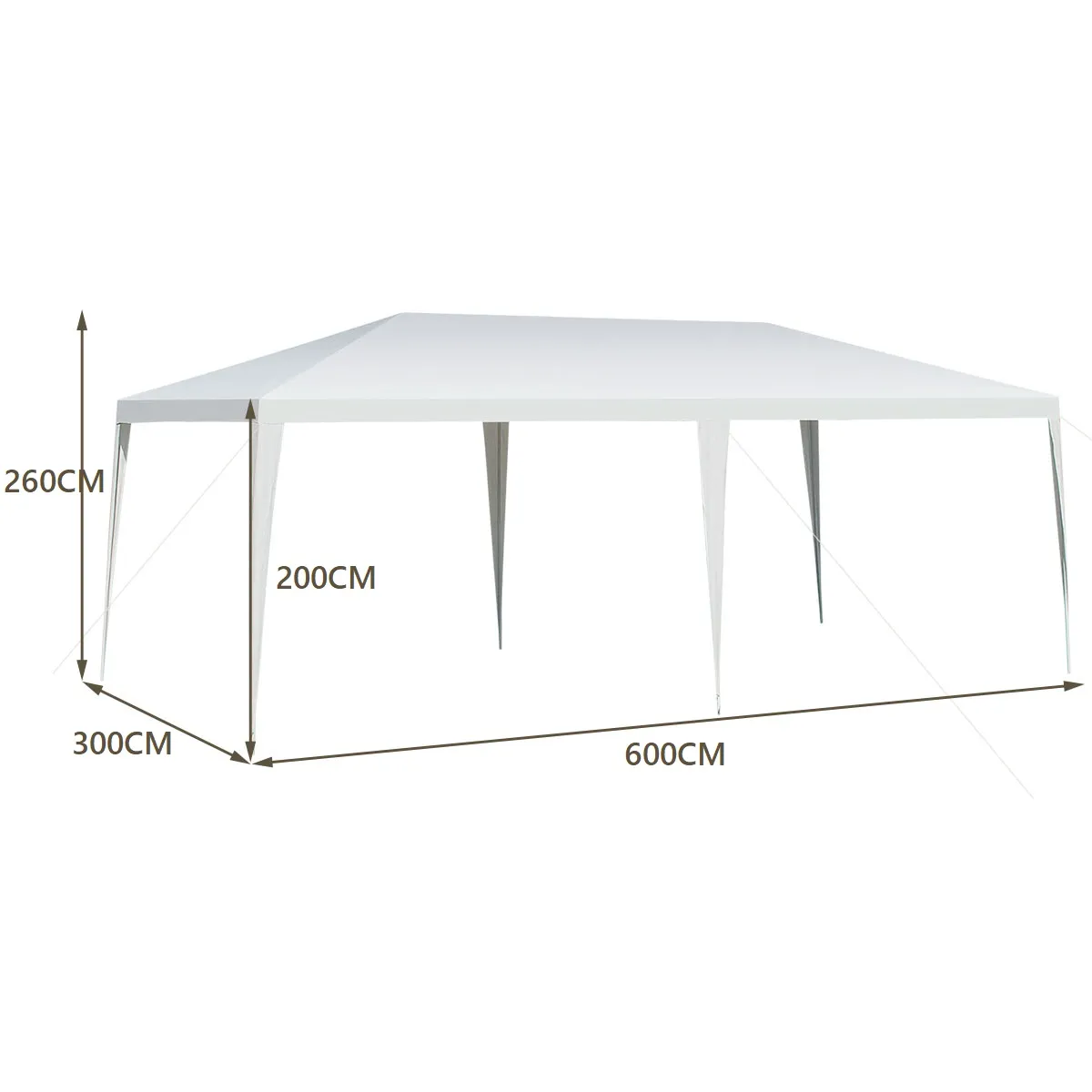 Grote capaciteit en multifunctioneel: Onze 3 m x 6 m grote bruiloftstent is ruim genoeg om een groep personen op te nemen. Het zal niet overvol zijn als jij en je gezin samen van een feest willen genieten. Je hoeft je geen zorgen te maken, ook als je in deze tent eet of uitrust. De partytent is perfect voor bruiloften, picknicks, barbecues of sommige commerciële activiteiten zoals rommelmarkten of fruitmarkten.