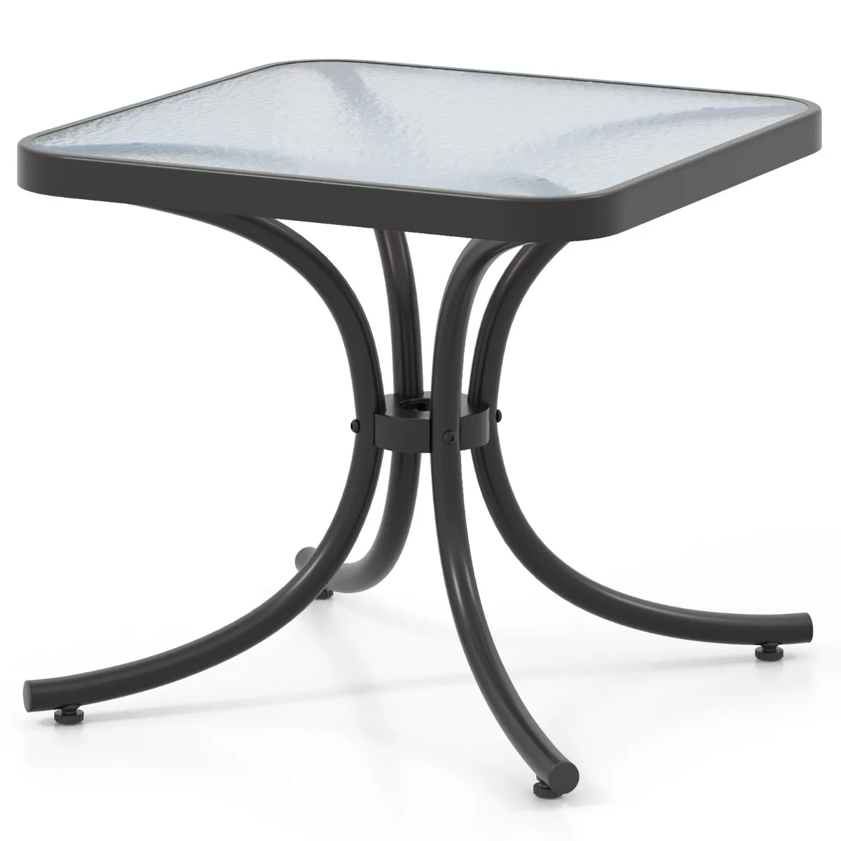 Het stevige metalen frame zorgt voor duurzaamheid en stabiliteit, versterkt met een fixatie voor extra stevigheid. Het blad van gehard glas is waterdicht en krasbestendig en biedt extra opbergruimte. Door het veelzijdige ontwerp kan hij functioneren als bijzettafel, salontafel of nachtkastje en is hij geschikt voor verschillende binnen- en buitenomgevingen.