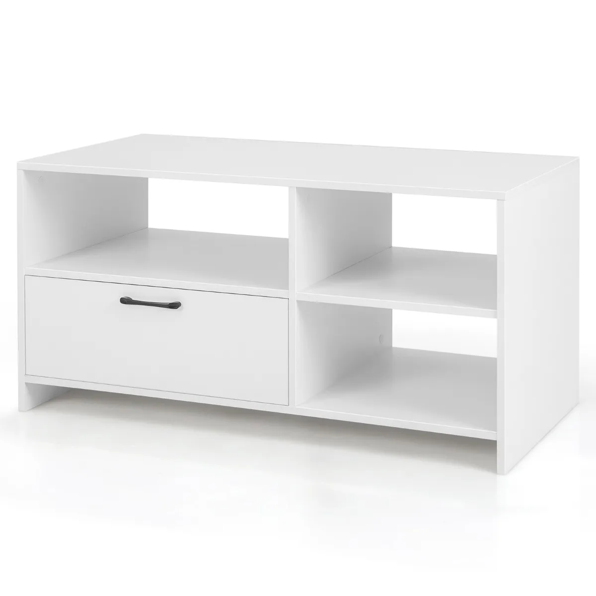 Open en gesloten opbergruimte: 3 open compartimenten maken het gemakkelijk om verschillende soorten spullen op te bergen en tentoon te stellen, zoals dvd-spelers, gameconsoles, afstandsbedieningen en boeken enz. De grote lade biedt verborgen opbergruimte voor zelden gebruikte spullen, zodat je huis veilig blijft netjes.