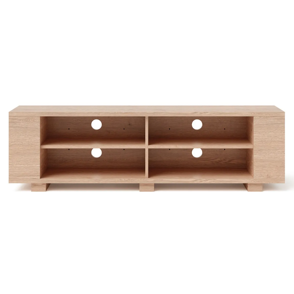 Handige kabelmanagementgaten: De achterkant van de TV-console is ontworpen met 4 voorgeboorde kabelmanagementgaten om rommel te voorkomen. Alle snoeren en draden kunnen worden weggewerkt om een schone, opgeruimde visuele ruimte te creëren. Bovendien zorgt het ontwerp met uitsparingen voor een betere luchtcirculatie.