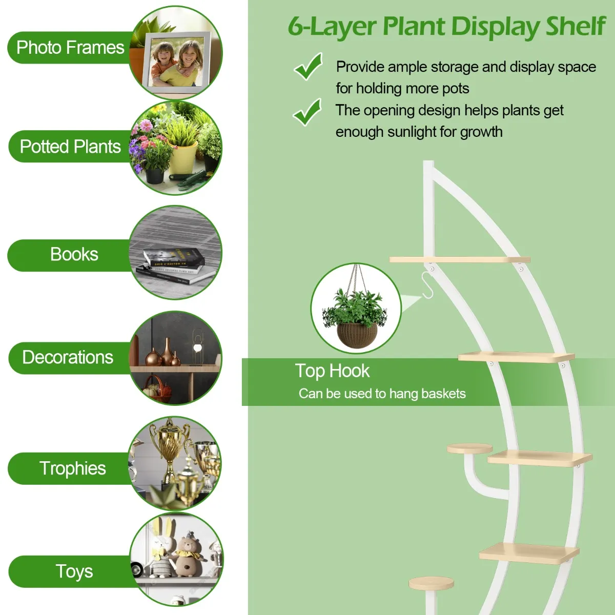 【Mooi gebogen ontwerp】De ladder bloempot standaard beschikt over een gebogen halve maan vorm, die uw ruimte kan maximaliseren terwijl het een element van elegantie toevoegt aan elke ruimte. Of het nu in de woonkamer, slaapkamer, balkon, overdekt terras of kantoor is, het kan een perfecte aanvulling zijn.
