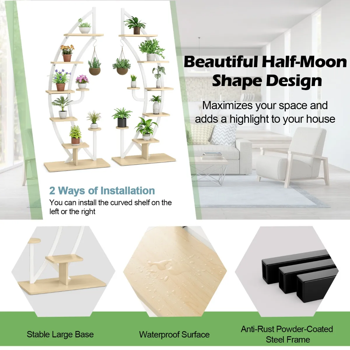 Onze 7-lagen metalen bloemenplank biedt voldoende ruimte om uw diverse planten en decoraties te tonen, waardoor uw ruimte opgeruimd en schoon is. U kunt het gebruiken als een display plank om uw boeken, collecties, fotolijsten, of trofeeën in de ingang of woonkamer te tonen. En het is ontworpen met een gebogen vorm als een halve maan, die kan opvallen in uw huisdecoratie. Meer dan dat, het wordt ondersteund door een zwaar gepoedercoat stalen frame, dat sterke ondersteuning biedt en zorgt voor een groot laadvermogen. En dankzij het anti-kantelmechanisme hoeft u zich geen zorgen te maken over omvallen en het vernielen van uw favoriete planten. Onze ladder bloempotten standaard is een veilige en redelijke plaats voor uw planten en decoraties en voegt tegelijkertijd een hoogtepunt toe aan uw huis.