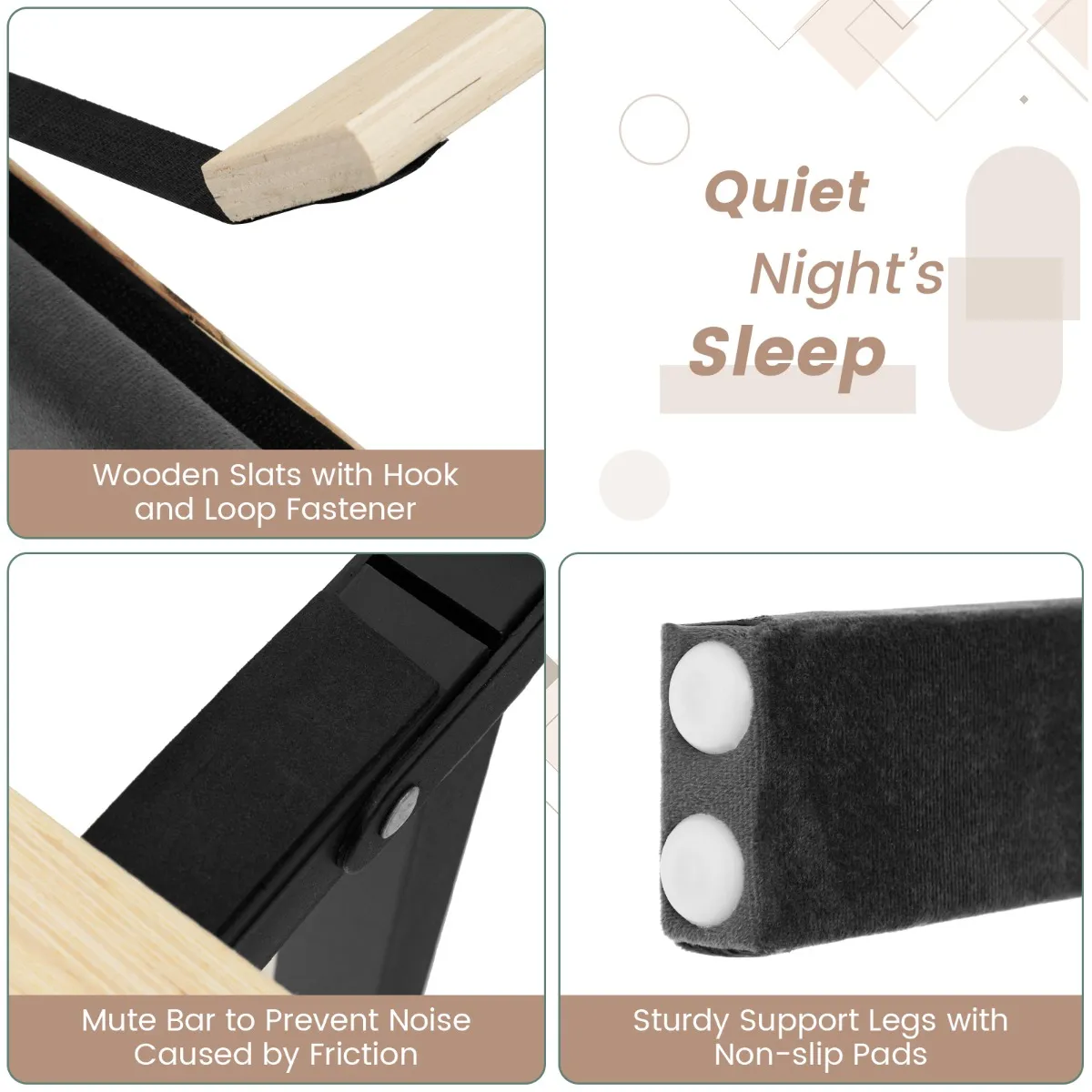 Massief houten lattenbodem: Dit bedframe is gemaakt van massief houten latten, die een goede taaiheid en buigweerstand combineren en tot 450 kg kunnen dragen. Bovendien zijn de stevige metalen middenpoten uitgerust met verstelbare voetkussens om het bedframe betrouwbaar te ondersteunen.
