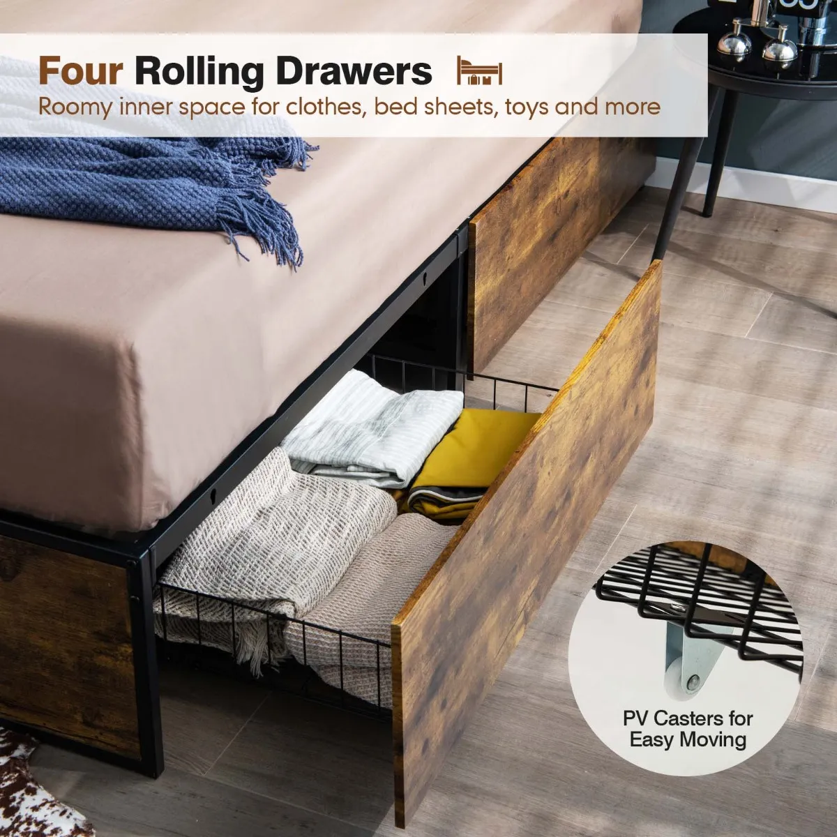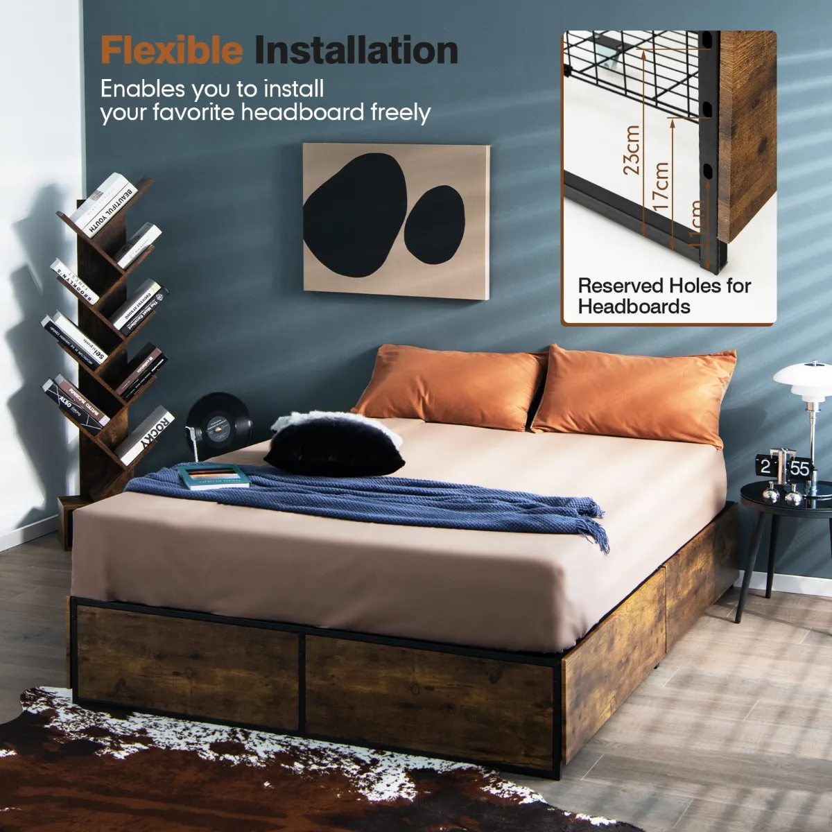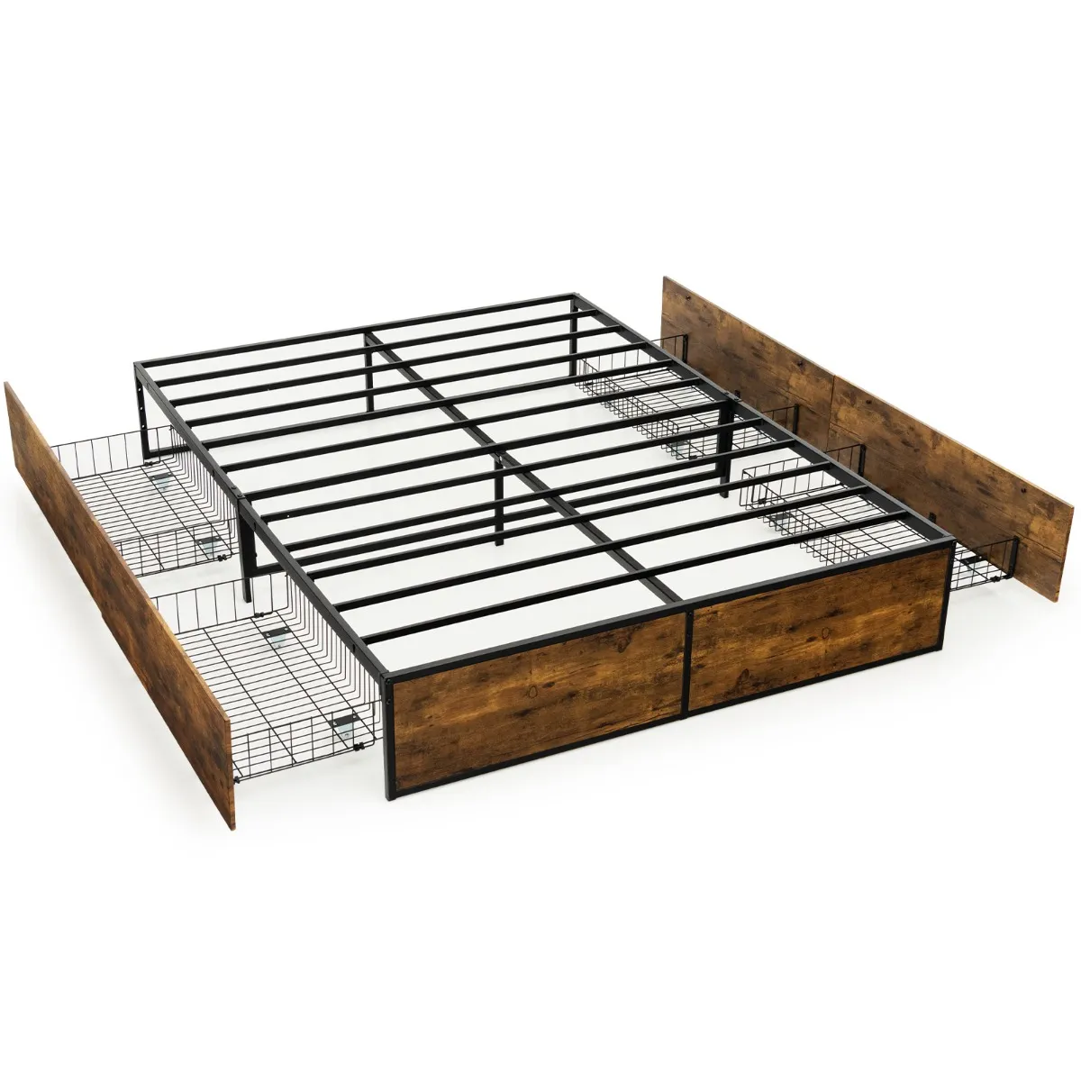 【Handige opslag toevoeging】: Behalve een ruim slaapgedeelte heeft het metalen bed ook 4 grote laden met soepele PV-wielen, waarin u seizoenskleding, lakens, kinderspeelgoed en meer kunt opbergen. Dit is precies waarom het platform bed perfect is voor kleine appartementen met beperkte ruimte.