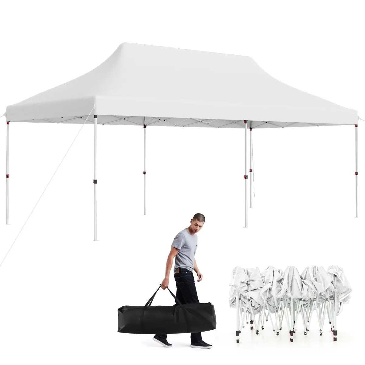 Opvouwbaar en draagbaar ontwerp: De partytent kan moeiteloos tot een klein formaat worden opgevouwen en wordt geleverd met een draagbare draagtas, waardoor hij gemakkelijk kan worden opgeborgen en vervoerd. Tips: Zorg ervoor dat u palen en windtouwen gebruikt om de luifel vast te zetten.